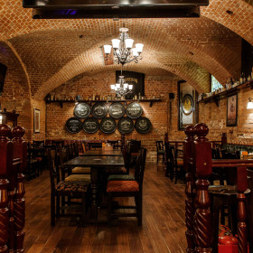Интерьер заведения - самодостаточен, при этом высокие потолки (8 метров) позволяют устанавливать любые декорации и проводить тематические мероприятия. Зал легко трансформируется под любую рассадку.