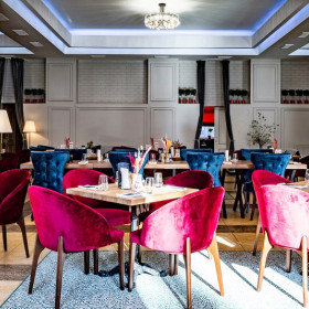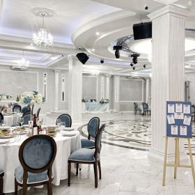 Банкетный зал "Сиреневый" представляет собой современную и в то же время стильную площадку для проведения мероприятий любого масштаба. Огромные возможности для кастомизации и изобилие дорогих материалов отделки и декора никого не оставят равнодушными.
