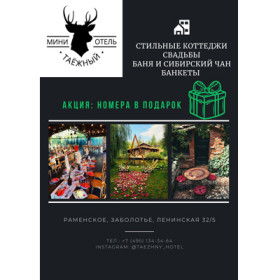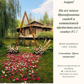 Под свадьбы мы предоставляем всю территорию мини-отеля + большую деревянную веранду для основного торжества (вместимость до 120чел). Территория сдается на сутки.