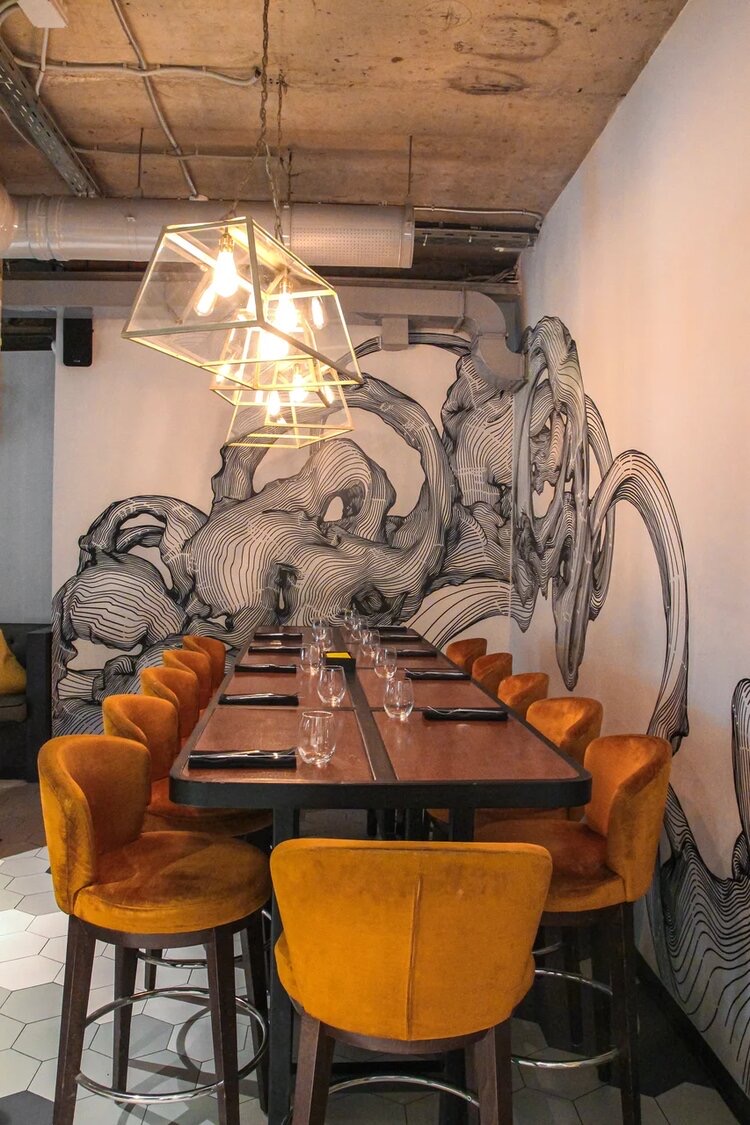 Это авторская кухня и бар + музыка + современный дизайн и искусство.