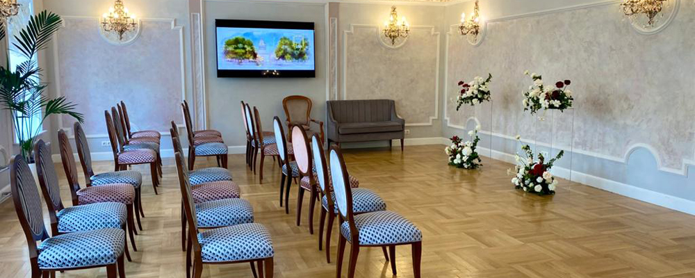 - возможность проведения выездной регистрации, приветственного фуршета, праздничного банкета на нашей КРЫШЕ с видом на Исаакиевский собор, Зимний дворец и Адмиралтейство;внутренний уютный Итальянский дворик также подходящий для фуршета и welcome-зоны;