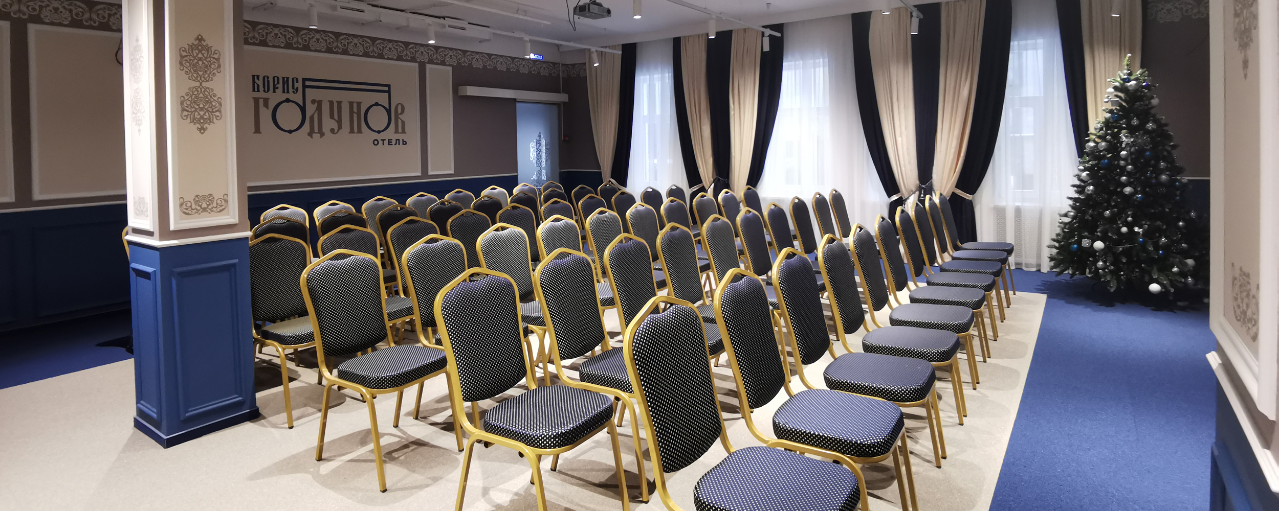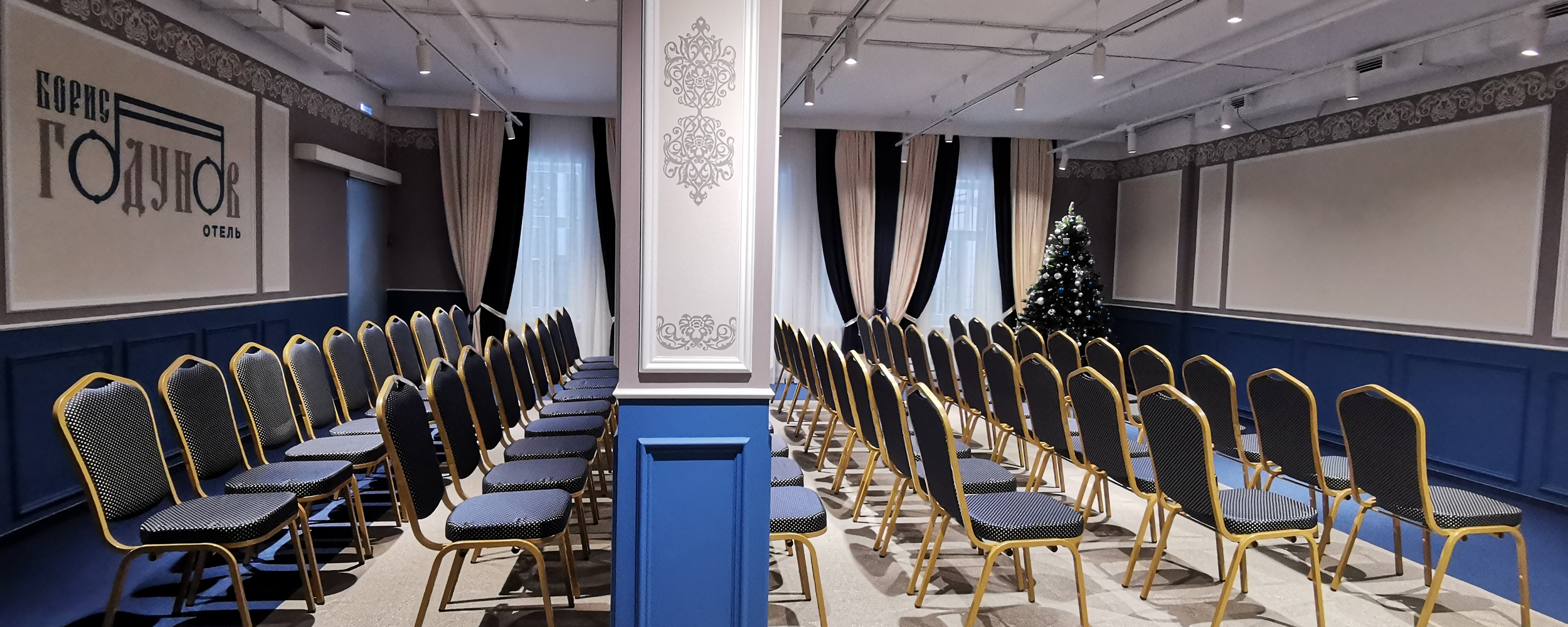 Банкетный зал отеля «Борис Годунов» - это яркий пример высококлассного европейского сервиса, неповторимого российского гостеприимства и современного московского шика. Он подходит для проведения праздников любого формата, будь то корпоратив, юбилей, свадьба, легкие фуршеты, детские дни рождения и деловые встречи.