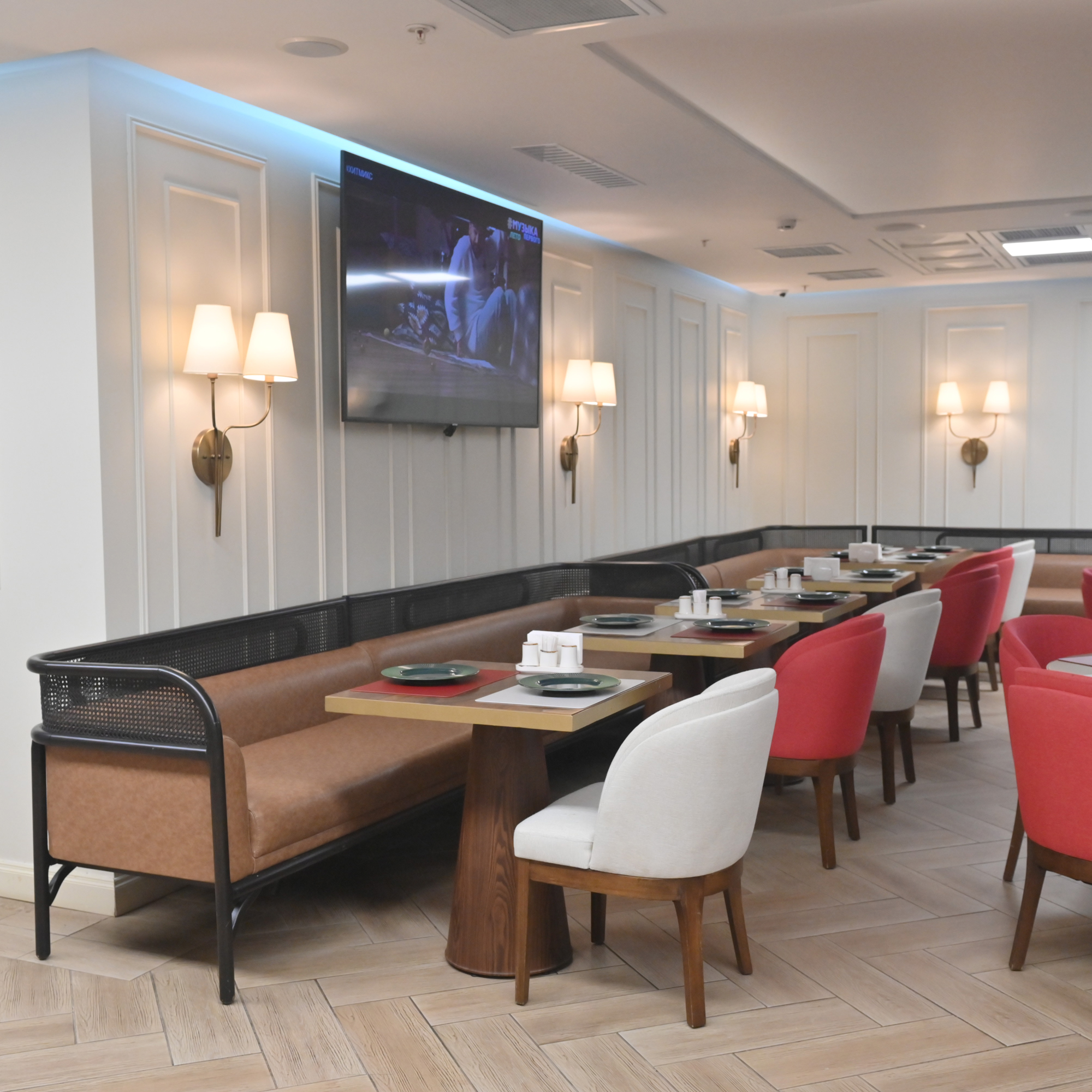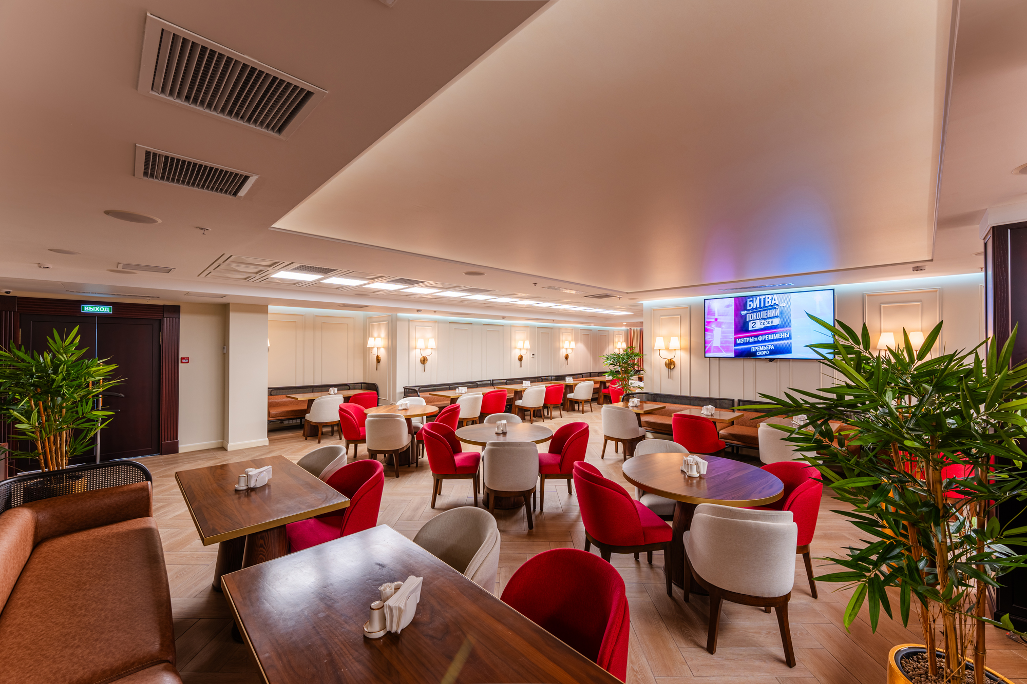 Уютный банкетный зал Восточный, площадью 60 кв. м имеет выход в лобби Отеля Броско. В зависимости от выбранной схемы рассадки, банкетный зал вмещает до 36 Гостей. Зал идеально подойдет для проведения дня рождения или юбилея, а также праздника или корпоративного мероприятия в небольшой компании. Банкетный зал имеет три приватных зоны, каждая из которых оборудована двумя комфортабельными двухместными диванами, отделенных от зала тканевыми перегородками. Помимо прочего, зал оборудован барной стойкой и тремя телевизионными экранами с возможностью фото-, видео презентаций, трансляций, поздравлений и т.д.