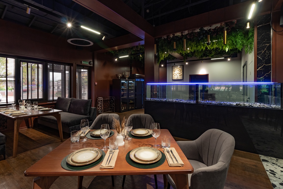 В истинных кавказских традициях для вас приготовили разнообразное меню с богатым выбором блюд и всевозможных закусок, выгодно дополняющих напитки. Здесь всегда можно выпить бокал вина под ненавязчивую музыку, провести приятный вечер с семьей, или организовать мероприятие на 150 персон. Летняя терраса с выходом на пруд, вместимостью до 100 персон. По пятницам и субботам на сцене резиденты show GRIG и приглашенные артисты. Lounge вечера в будни. Большой экран. 2 удобные парковочные зоны. Аниматор встречает маленьких гостей по выходным. Зал оснащен профессиональным световым и звуковым оборудованием.