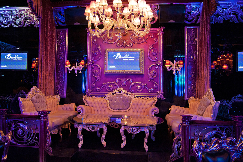 В самом центре столицы у каждого из Вас появилась возможность почувствовать себя царской особой, оказавшись в королевском караоке-клубе DorFFman.Забудьте все, что вы знали о караоке-клубах до «Дорффмана». Потому что «Дорффман» — это искрометность «Мулен Руж», элегантность Radio City и аристократизм «Кентербери мюзик-холл», объединенные в одном заведении. И главное действующее лицо музыкальной феерии в стиле «Дорффман» — гости. Шикарный интерьер – одно из главных отличий DorFFman от подобных заведений. Даже об уборной посетители отзываются как о музейном экспонате. Унитаз с позолотой возведенный на мраморный пьедистал, зеркало с тв проекцией, релаксирующая музыка в каждой туалетной комнате. Караоке-театр разделен на два зала, различных по своему оформлению. Основная часть выполнена с использованием сочетания сиреневого и черного цветов, а VIP-зал, утопает в розовато-лиловых оттенках. Ресторан «Dorffman» гостеприимно открывает свои двери каждый день с 18:00. Караоке начинает работать с 20:00 до 06:00. В «Dorffman» клубе депозитная система оплаты столов. В стоимость депозита входит еда, напитки алкогольные и безалкогольные, кальяны. Если Вы являетесь ценителем музыки, но не любите петь сами, то можете забронировать столы без права исполнения песен, оплата производится по счету.