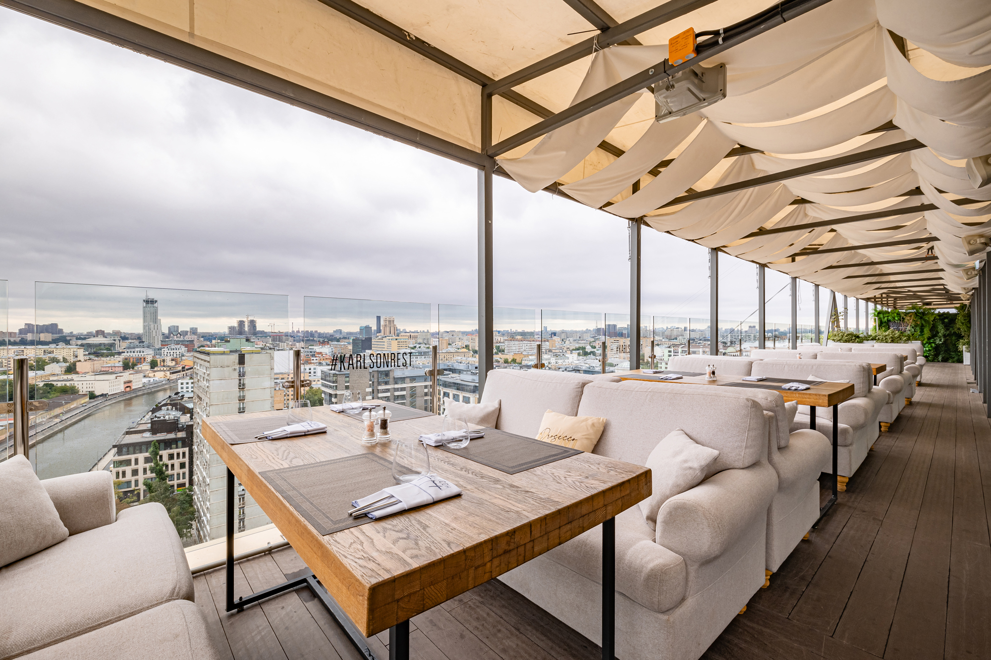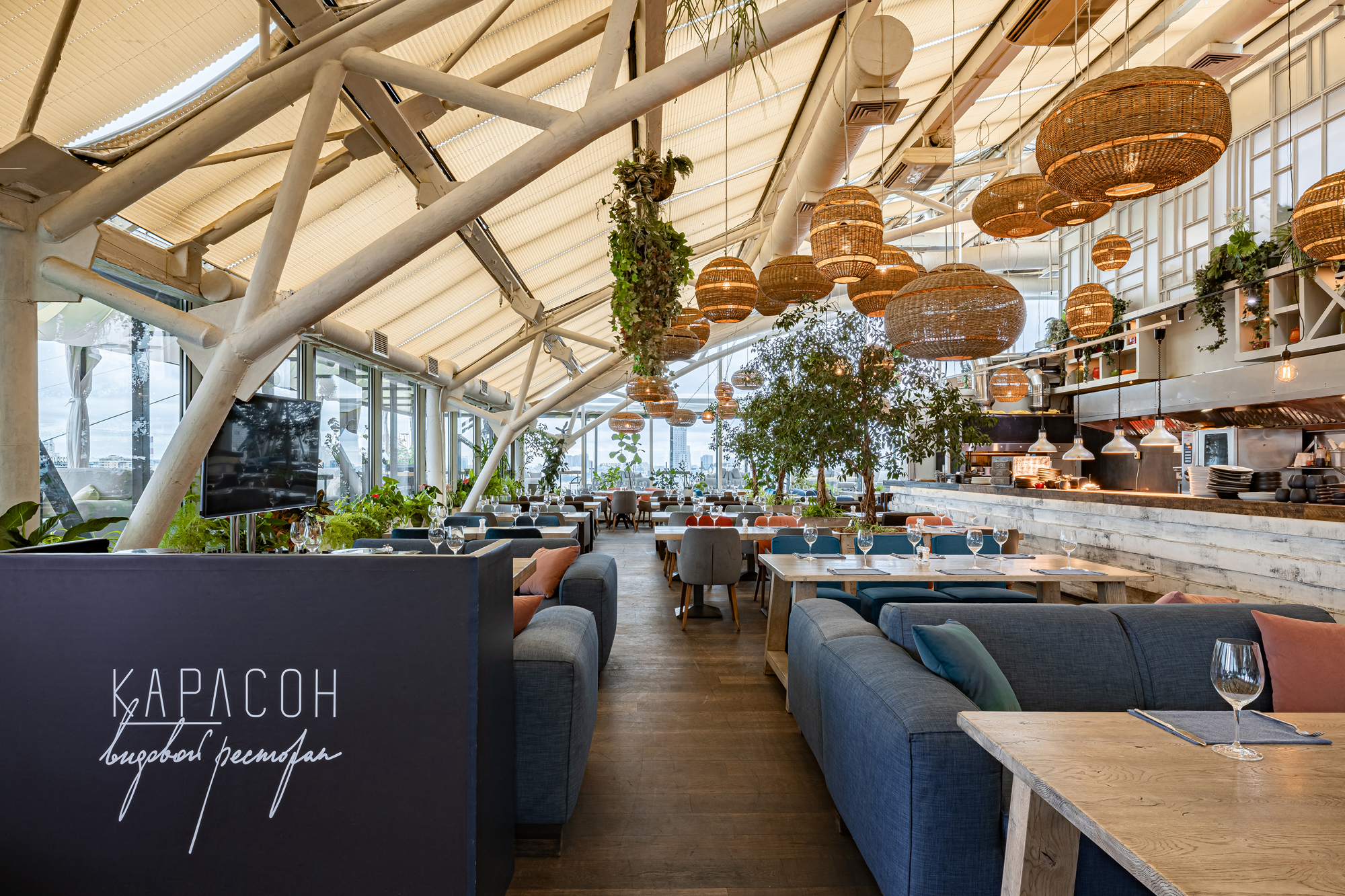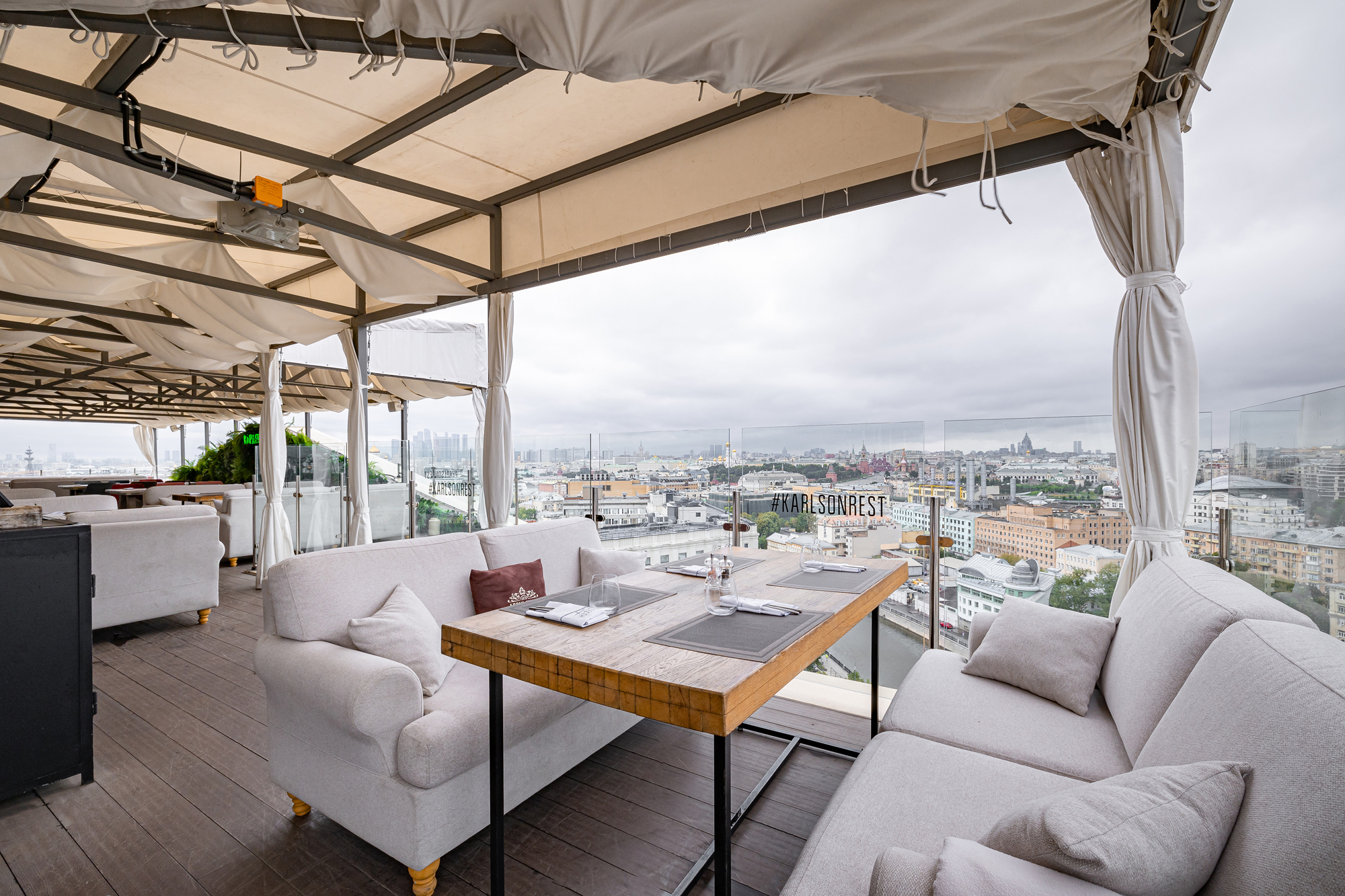 Панорамный ресторан «Карлсон» — одно из лучших мест в городе, чтобы расслабиться и не спеша любоваться великолепным видом на Кремль, закатами и огнями Москвы, наслаждаясь вкусными блюдами и напитками. В зале могут разместиться до 120 гостей, а в теплое время года работает зеленая, воздушная веранда с уютными диванами, которая вмещает до 200 гостей. В будние дни в ресторане действует скидка 20% на блюда и напитки, кроме блюд отмеченных * и специальных предложений. Также по будням до 16:00 действует специальное предложение с блюдами от нашего шеф-повара, которые прекрасно подойдут для вкусного и красивого обеда. Еще одним приятным бонусом станет скидка 10%, именинникам и молодоженам, которая предоставляет в день вашего события при предъявлении оригинала паспорта или водительского удостоверения.