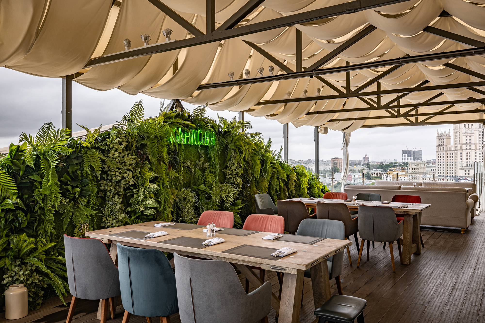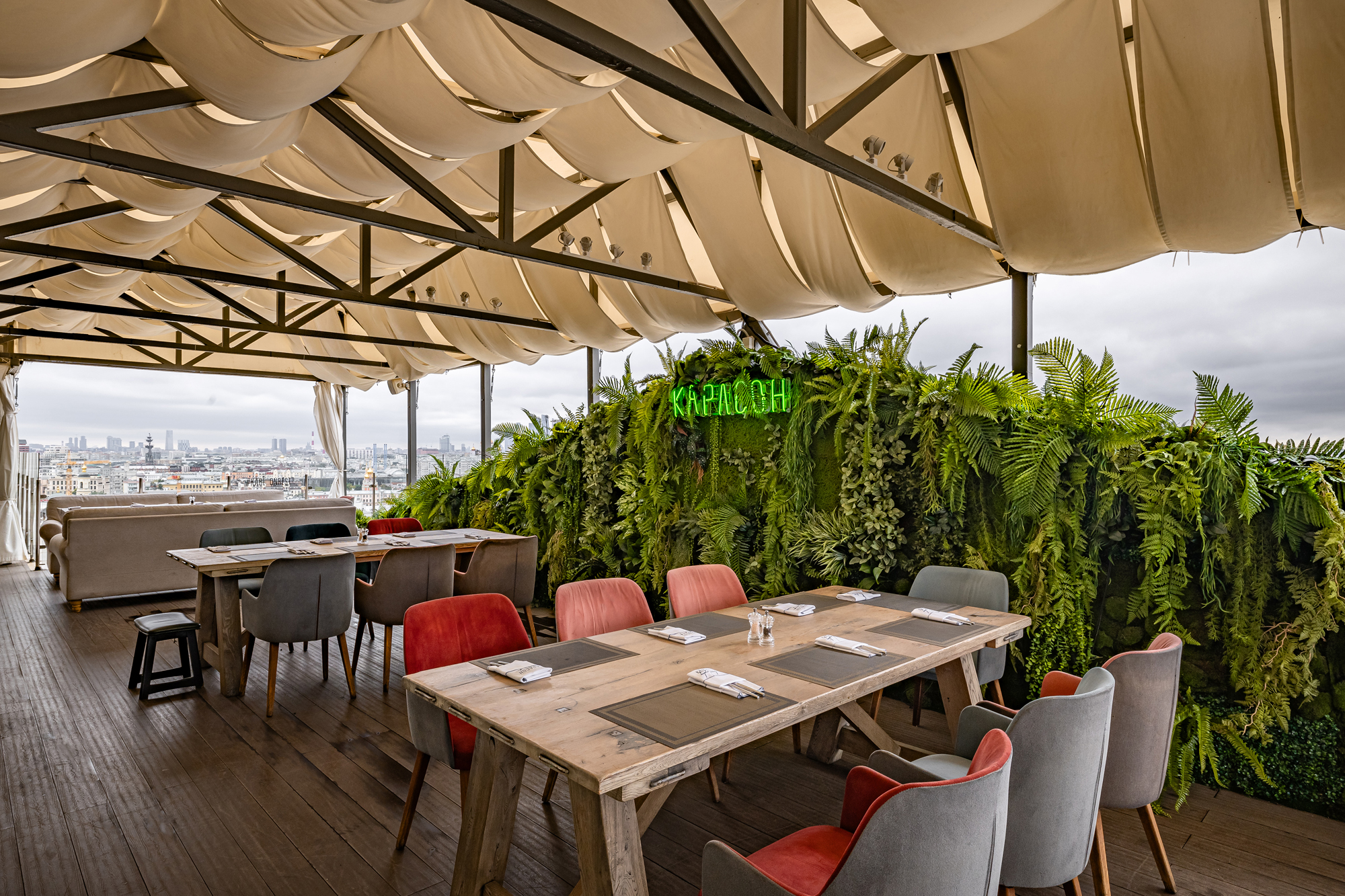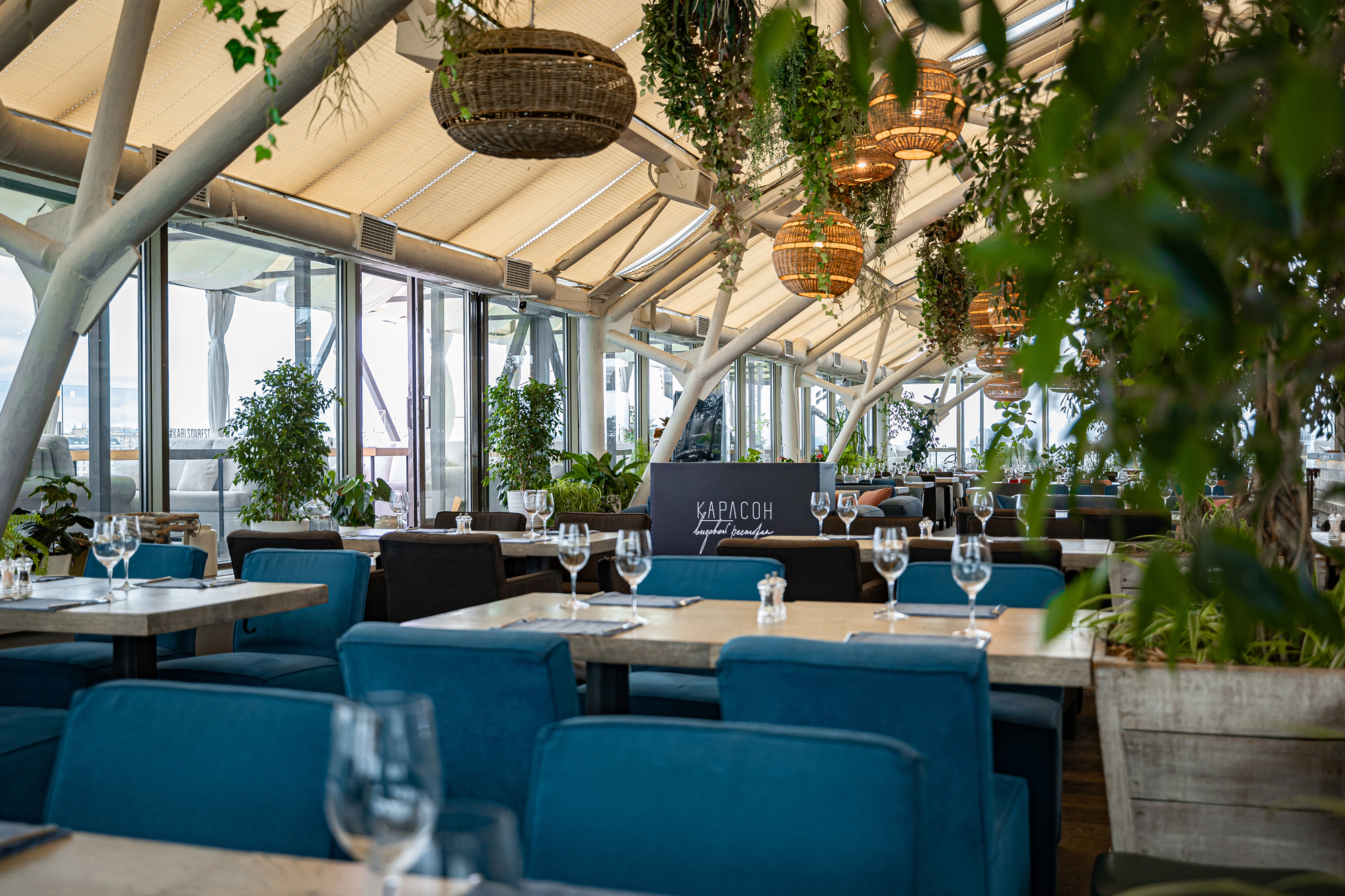 Панорамный ресторан «Карлсон» — одно из лучших мест в городе, чтобы расслабиться и не спеша любоваться великолепным видом на Кремль, закатами и огнями Москвы, наслаждаясь вкусными блюдами и напитками. В зале могут разместиться до 120 гостей, а в теплое время года работает зеленая, воздушная веранда с уютными диванами, которая вмещает до 200 гостей. В будние дни в ресторане действует скидка 20% на блюда и напитки, кроме блюд отмеченных * и специальных предложений. Также по будням до 16:00 действует специальное предложение с блюдами от нашего шеф-повара, которые прекрасно подойдут для вкусного и красивого обеда. Еще одним приятным бонусом станет скидка 10%, именинникам и молодоженам, которая предоставляет в день вашего события при предъявлении оригинала паспорта или водительского удостоверения.
