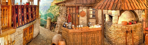 Гости могут отведать шашлыки, хинкали, люля, артала, чахохбили Перепела, цыпленок табака, хачапури, барабулька всливах, лобио, чихиртма, сациви, купаты и многое другое. Для желающих попробовать всего исразу рекомендуется «пурмарили», что по-грузински означает «хлеб дасоль», ипредставляет собою грузинский вариант шведского стола.