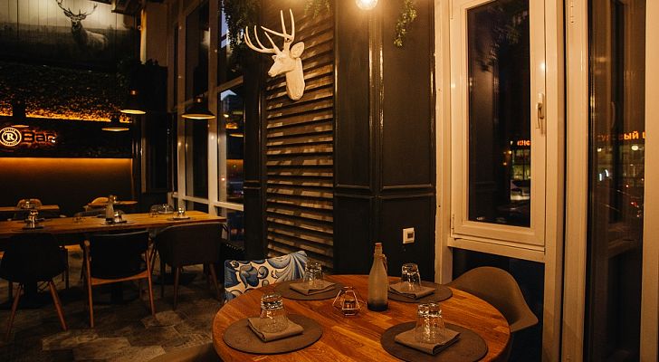 Гастрономический бар от шеф-повара Рустама Тангирова на Киевской улице. На открытой кухне здесь готовят блюда в русском северном стиле, во многих позициях присутствует дичь, ягоды, грибы и морепродукты. Их шеф-повар сам добывает на побережье Баренцева моря и Северного Ледовитого океана. В качестве эксперимента Рустам ввел в меню несколько блюд с азиатским оттенком. По будням с 9:00 утра до 11:00 шеф-повар вместе с супругой в роли бариста сервируют завтраки, затем «Копченый» закрывается и возобновляет работу с 13:00. В интерьере заведения постарались передать любовь хозяина к северной природе: тут и березы из Териберки, и имитация влетающей в окно стаи уток, и стена из древесного угля и натурального мха.
