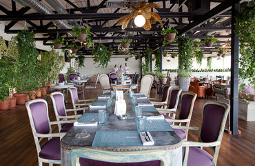 Формат панорамного, полуоткрытого заведения на свежем воздухе вблизи воды для Гинзы далеко не нов, и представлен в «Корюшке» с превосходной ресторанной элегантностью. Эклектичный дизайн-интерьер разработан «НБ- студией». Сочетание в пространственном зонировании бежево-сиреневых и серых текстур, асимметрия симпатичных светильников и сплошное буйство зелени вокруг – вот те специфические черты, создающие совершенно особую атмосферу ресторанчика.