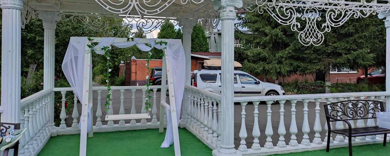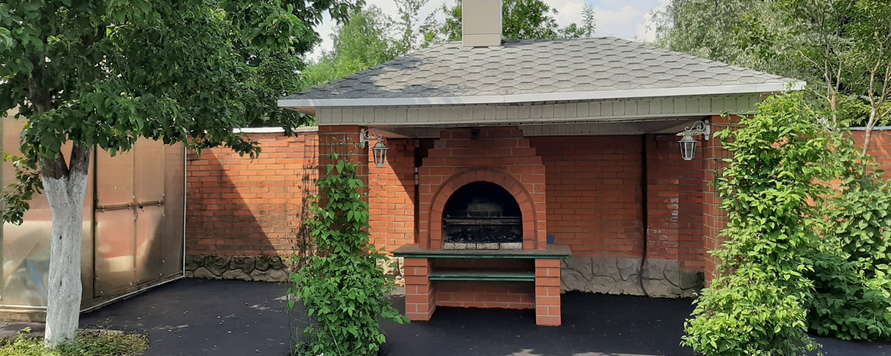- Большая собственная территория – 45 соток с зелёными насаждениями, беседкой, шатром и зоной барбекю.