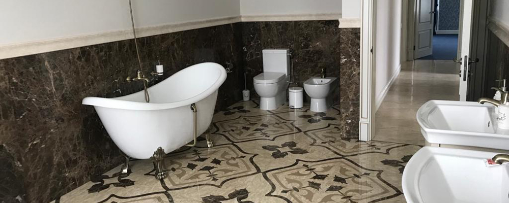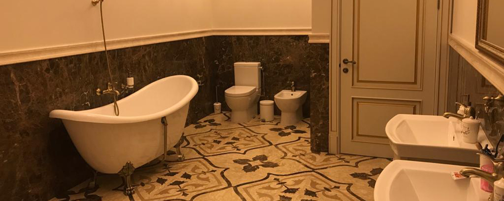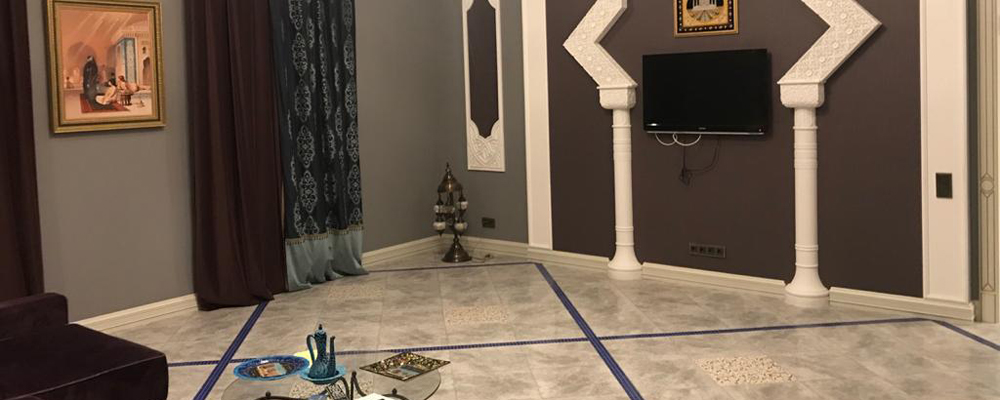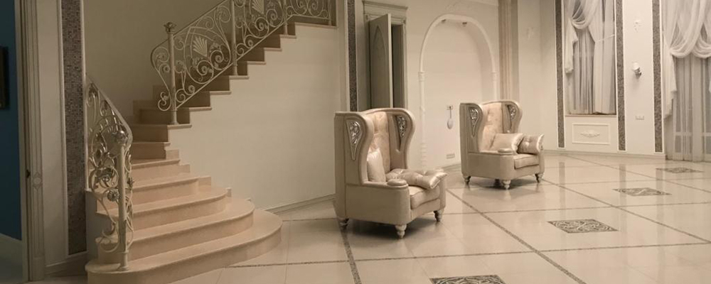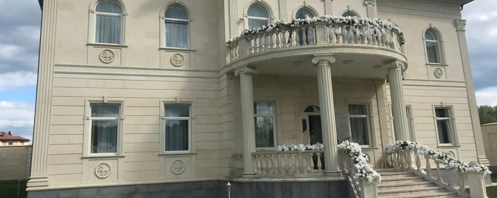 • Уникальный дизайн – коттедж оформлен в византийском стиле. Внутренние помещения с высокими потолками – от 4 метров, а в зале для приёмов – 8 метров. В отделке коттеджа использовались только качественные натуральные материалы – более 100 т природного камня, 7 мозаик ручной работы и обилие авторской лепнины из натурального гипса.