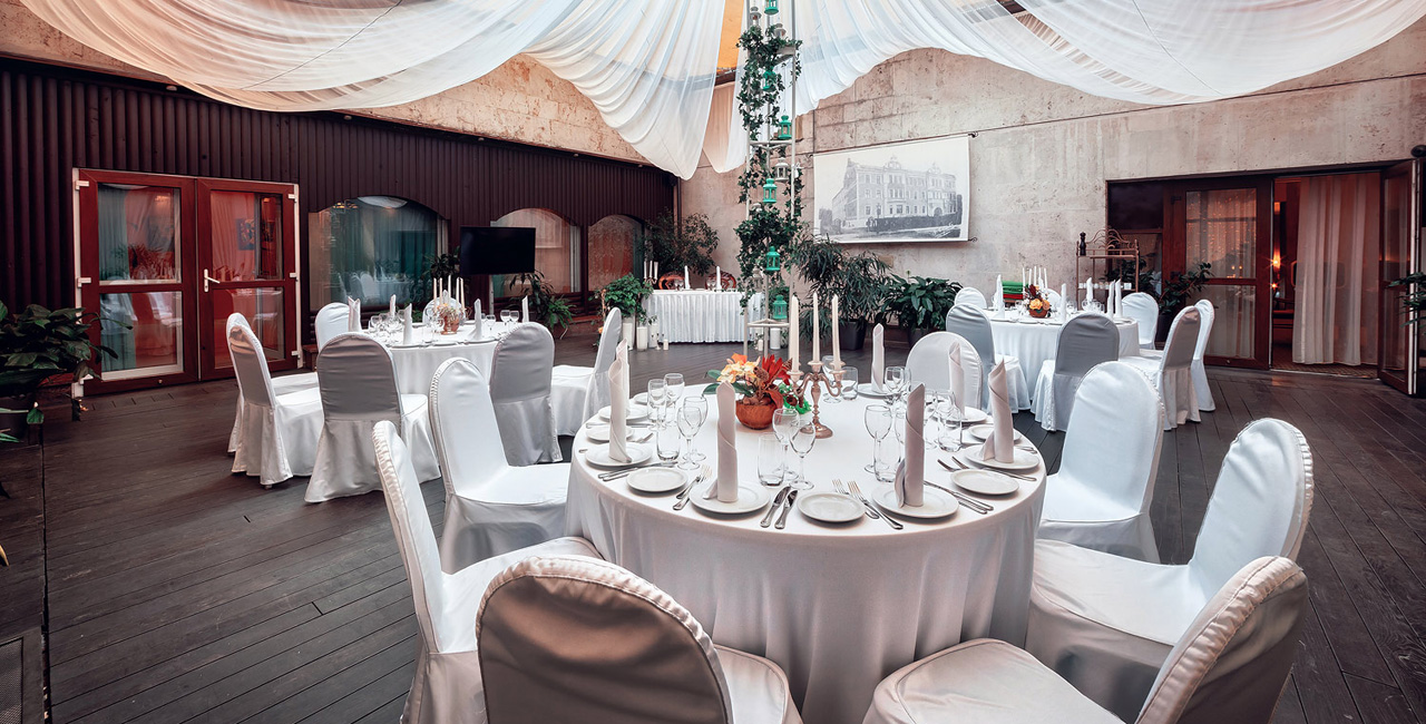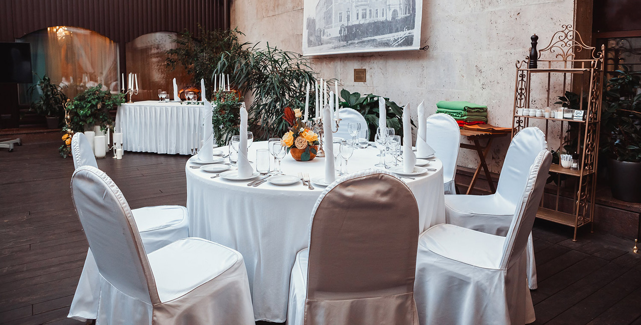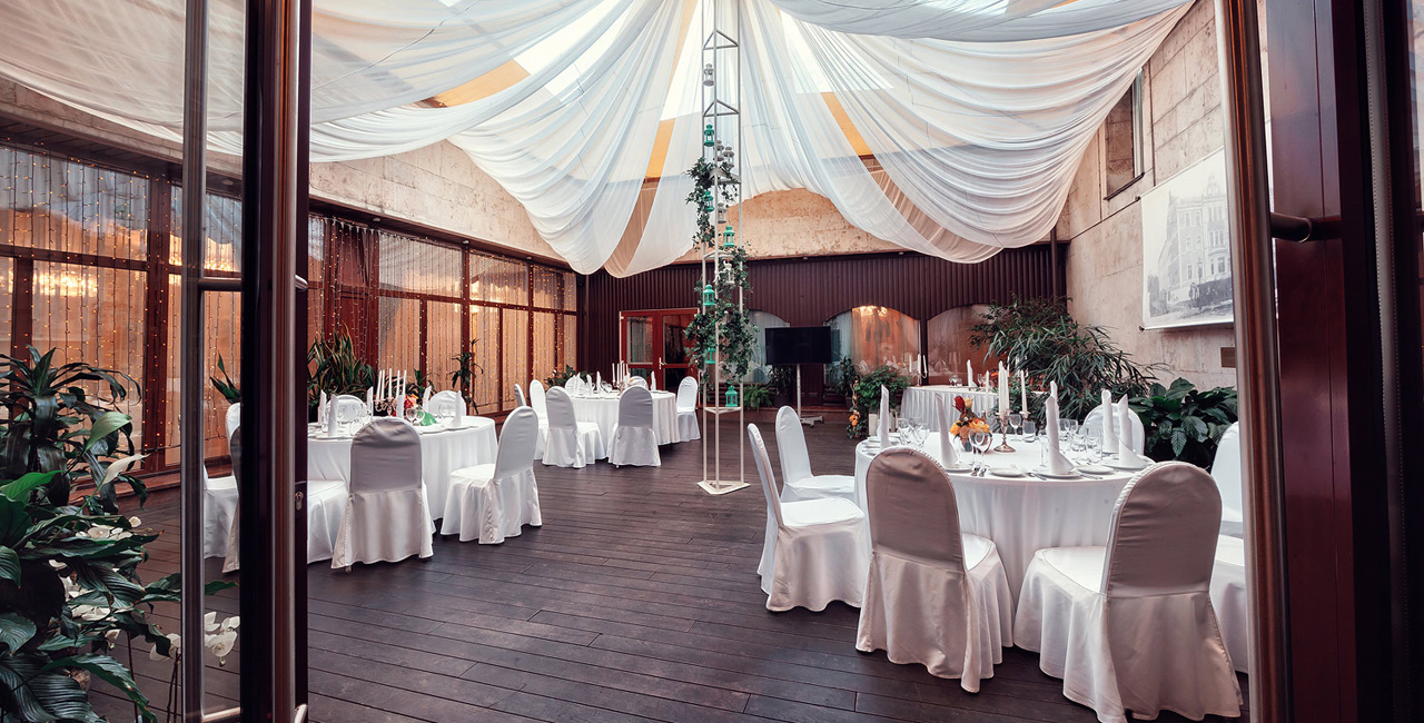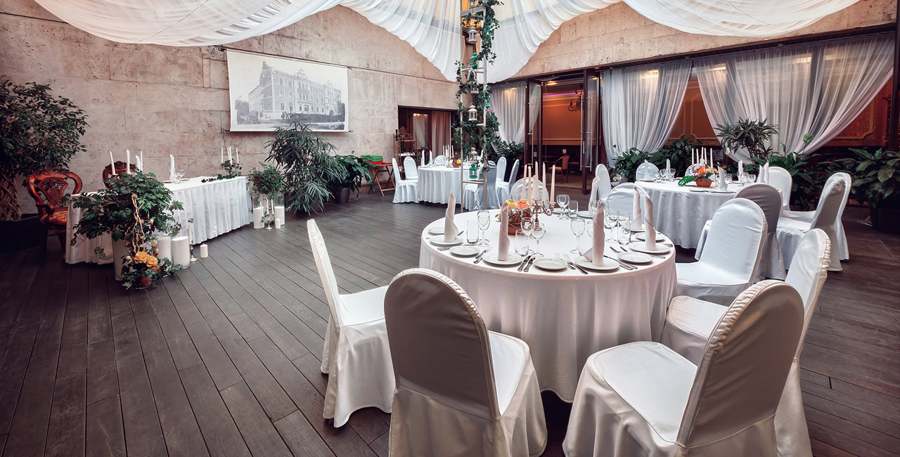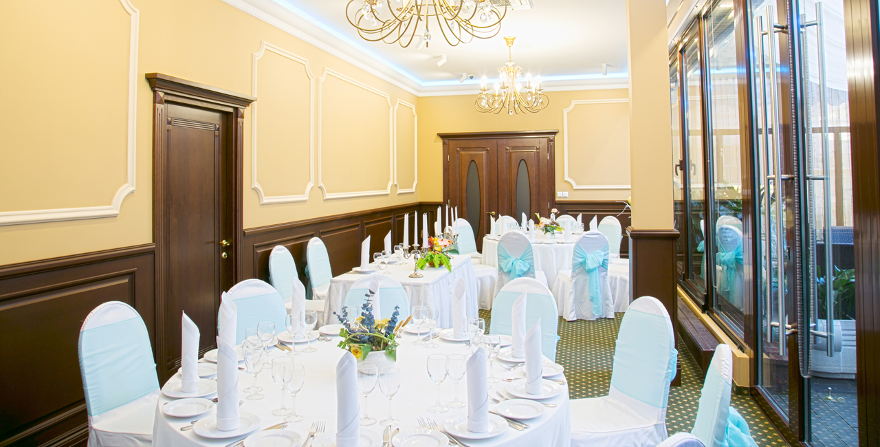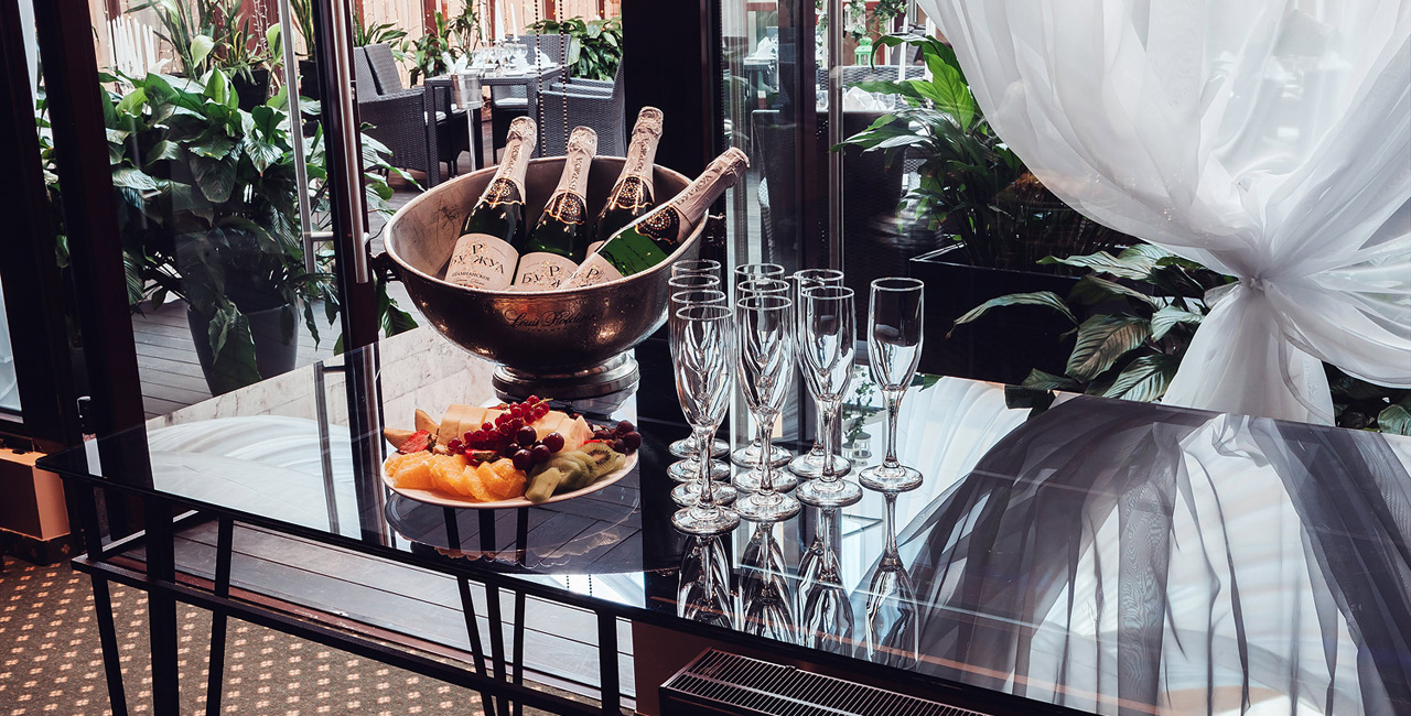 В элегантном оранжевом холле гостей ждет изысканный аперитив, банкетный зал ресторана украшается в соответствии с пожеланиями молодоженов. Несколько вариантов set-меню разной ценовой категории позволяют провести банкет любого уровня.