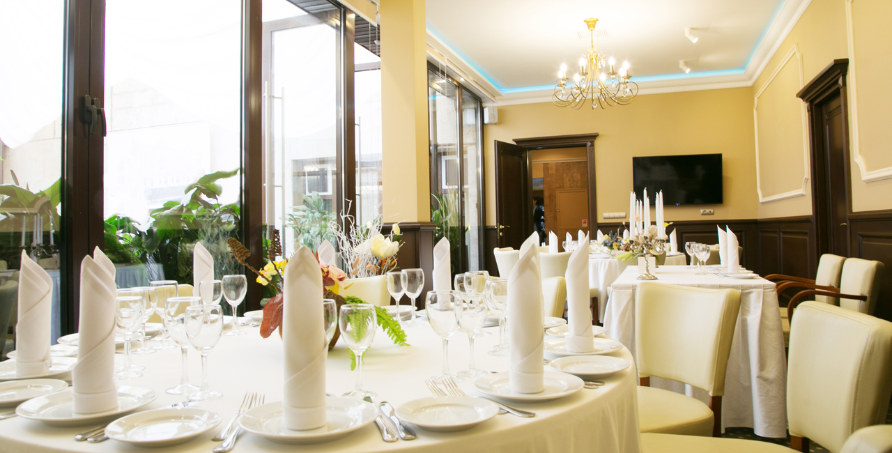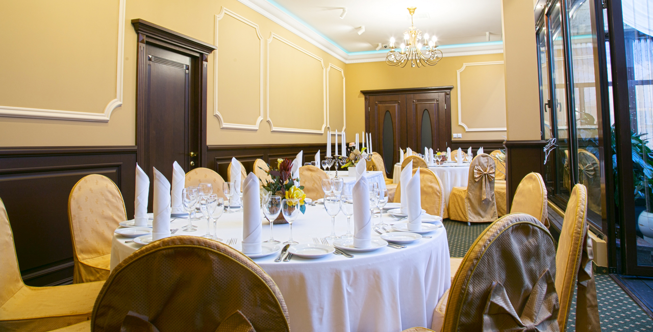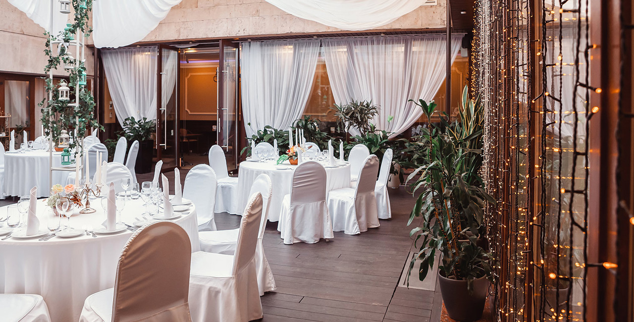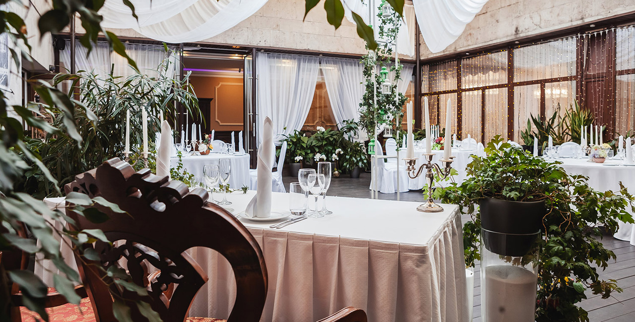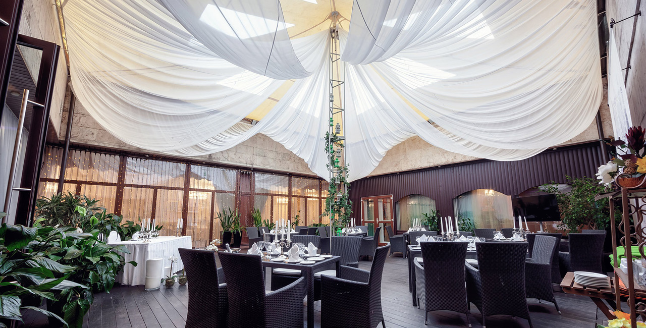 В элегантном оранжевом холле гостей ждет изысканный аперитив, банкетный зал ресторана украшается в соответствии с пожеланиями молодоженов. Несколько вариантов set-меню разной ценовой категории позволяют провести банкет любого уровня.