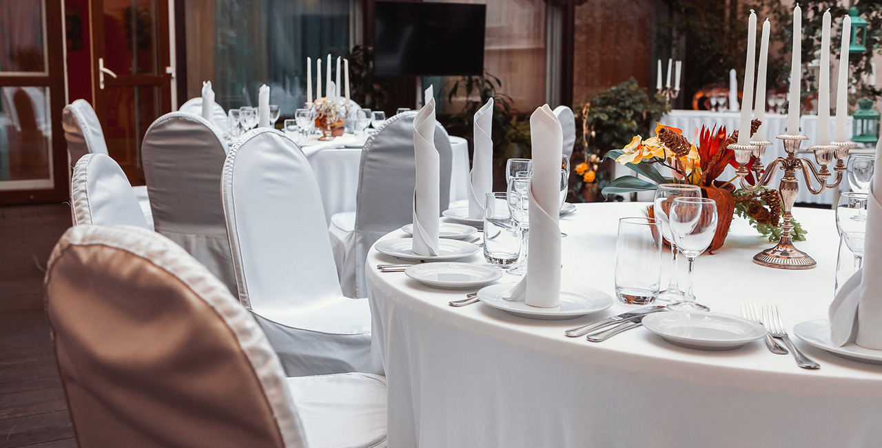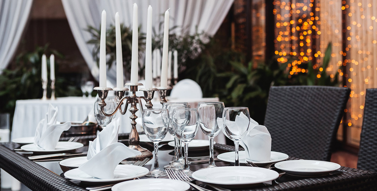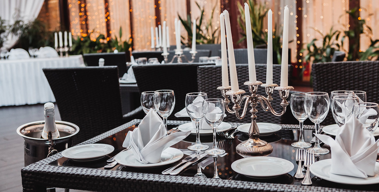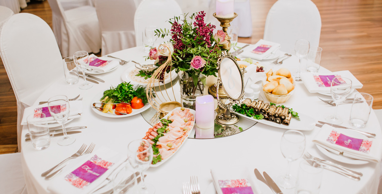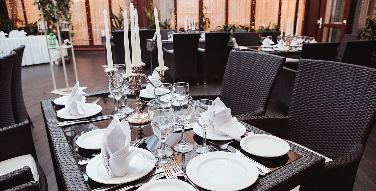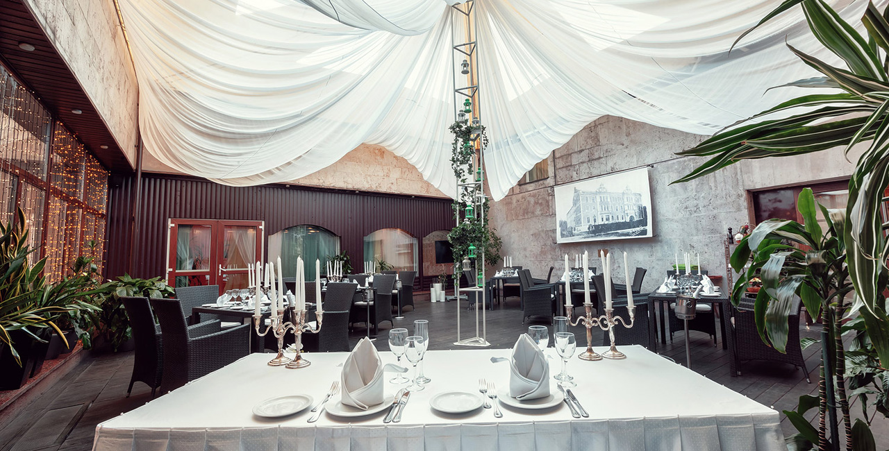 В элегантном оранжевом холле гостей ждет изысканный аперитив, банкетный зал ресторана украшается в соответствии с пожеланиями молодоженов. Несколько вариантов set-меню разной ценовой категории позволяют провести банкет любого уровня.