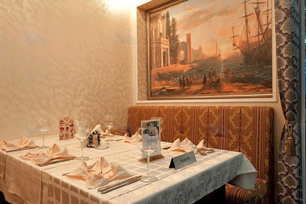 Помимо основного зала, рассчитанного на шестьдесят человек, «Men’KKings» разместит гостей в одном из четырех уединенных «купе», где при желании можно укрыться за узорчатыми шторами. Есть место для танцев и оборудование, необходимое для проведения торжеств.
