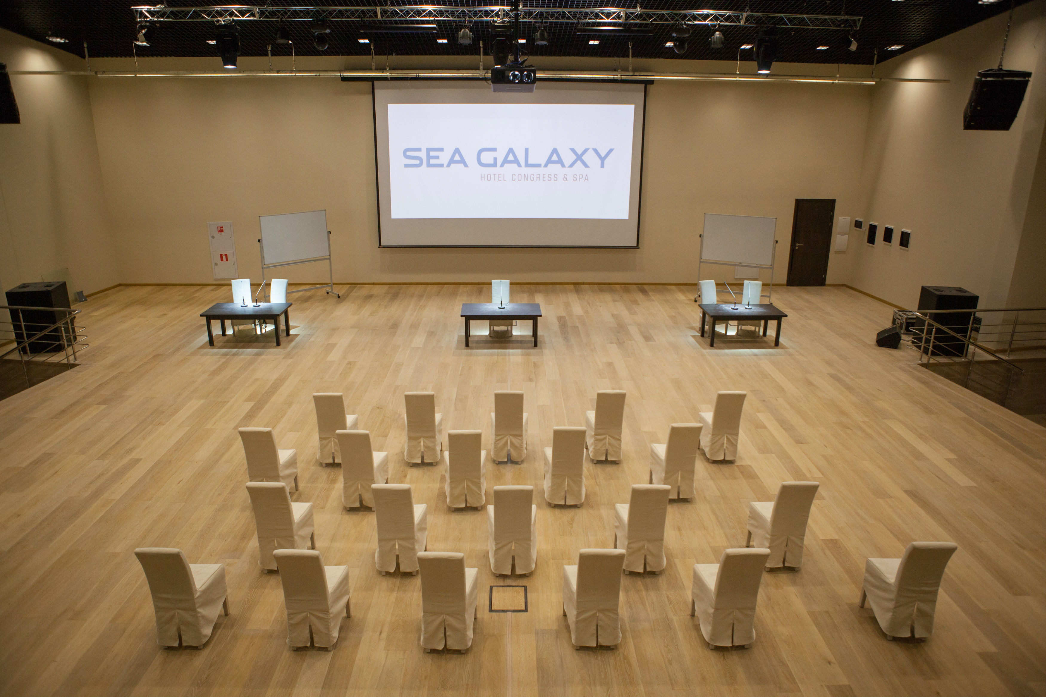 Представляем к вашим услугам конгресс-холл Sea Galaxy Hotel Congress and Spa. Зал оснащен высококлассным аудио и проекционным оборудованием, что дает возможность проведения мероприятий любого уровня технической сложности. Всю площадь зала покрывает сигнал высокоскоростного Wi-Fi интернета, вследствие чего участники мероприятия имеют доступ к глобальной сети в любой точке конгресс-холла.