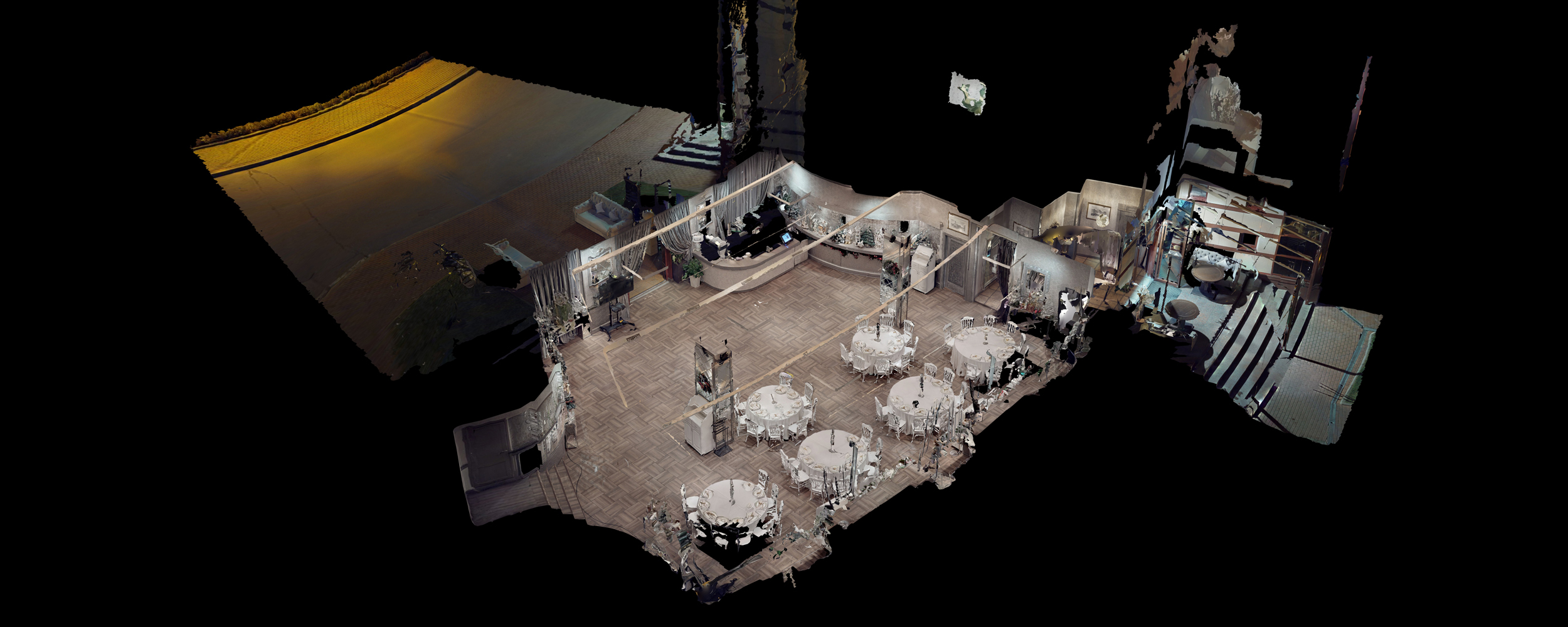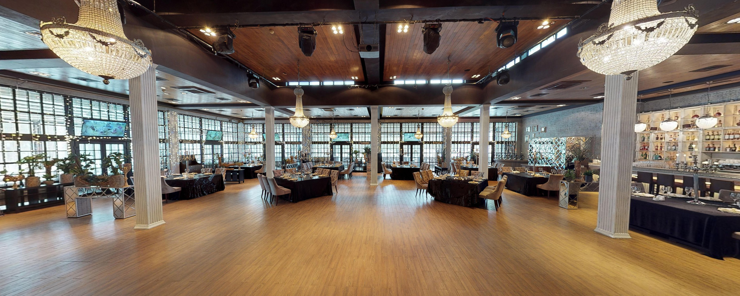 Так же есть 8 световых голов, профессиональный DJ пульт, микрофоны. Звук 4 Квт. За сценой есть гримерка для артистов. В ресторане есть современный черный рояль который может пригодиться на wellcome любого банкета. Есть большая летняя веранда, которая вам позволит, сразу, выйдя из зала оказаться в лоне природы. В ресторане со стороны веранды отсутствуют стены, которые заменены витражами от пола до потолка, 7 независимых выходов на веранду сквозь витражные окна.