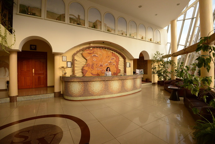 Отель имеет оригинальное архитектурное решение фасада, необычное здание издалека привлекает к себе внимание, символизирует далекое путешествие в пространстве и времени – легендарный Шелковый путь. «Silky Way» как экзотическая восточная шкатулка открывает каждому вошедшему многоуровневые пространства отеля, демонстрирует изысканные интерьеры, удивляет сложным декором и настоящими предметами старины. Панорамные окна, большая винтовая лестница расширяют пространство мини-отеля. На трех этажах расположены уютные гостевые зоны с мягкими восточными диванами, креслами, столиками, плетеной мебелью, качелями и роялем.