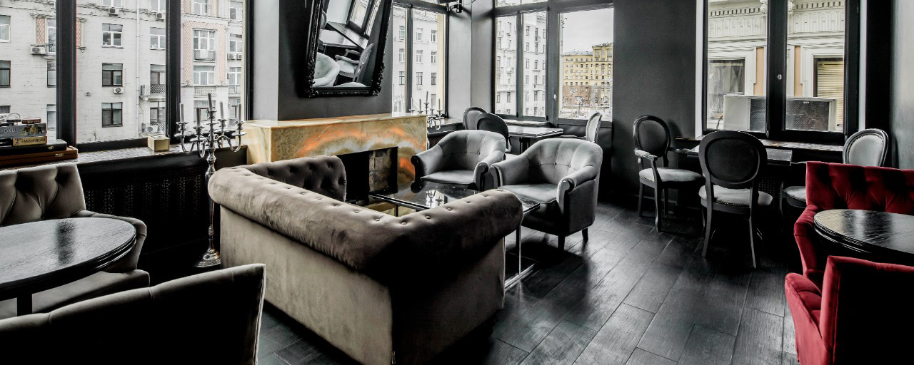 Необычное место с живым камином, стеклянным баром и 100-летним балконом с видом на Тверскую.