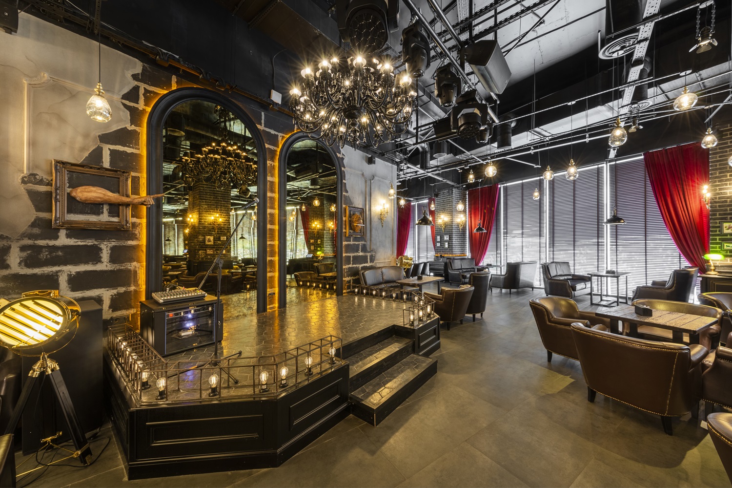 Интерьер заведения изящно сочетает в себе брутальный лофт с элементами винтажной роскоши в стиле старого английского особняка: плотно заколоченные окна, полуразрушенные стены с кирпичными и деревянными вставками дополняются изящными люстрами и канделябрами, и таинственный владелец – загадочный мистер Т., создавший это место. Просторные мягкие диваны и сумрачное освещение создают уют и приглушенную атмосферу для гостей. Вечерами по выходным здесь рождаются чарующие звуки музыки и звонкий смех: на небольшой сцене разворачиваются живые выступления, проходят стендап-шоу, игры в мафию и квизы, что придает месту непринужденную и динамичную атмосферу.