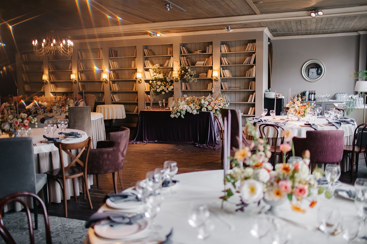 Стильный зал с витражными окнами, панорамным видом и библиотекой, с возможность зонирования на 150 гостей. Или уютный камерный зал на 30 гостей. Эксклюзивное меню от Николая Шестухина с тортами от нашей кондитерской. Уже 10 лет радуем своих гостей. Приглашаем на бесплатную дегустацию меню.