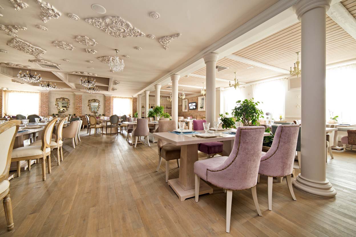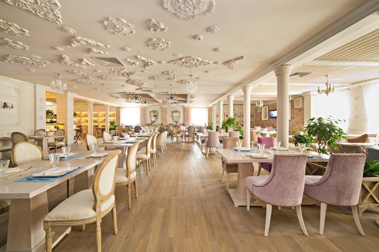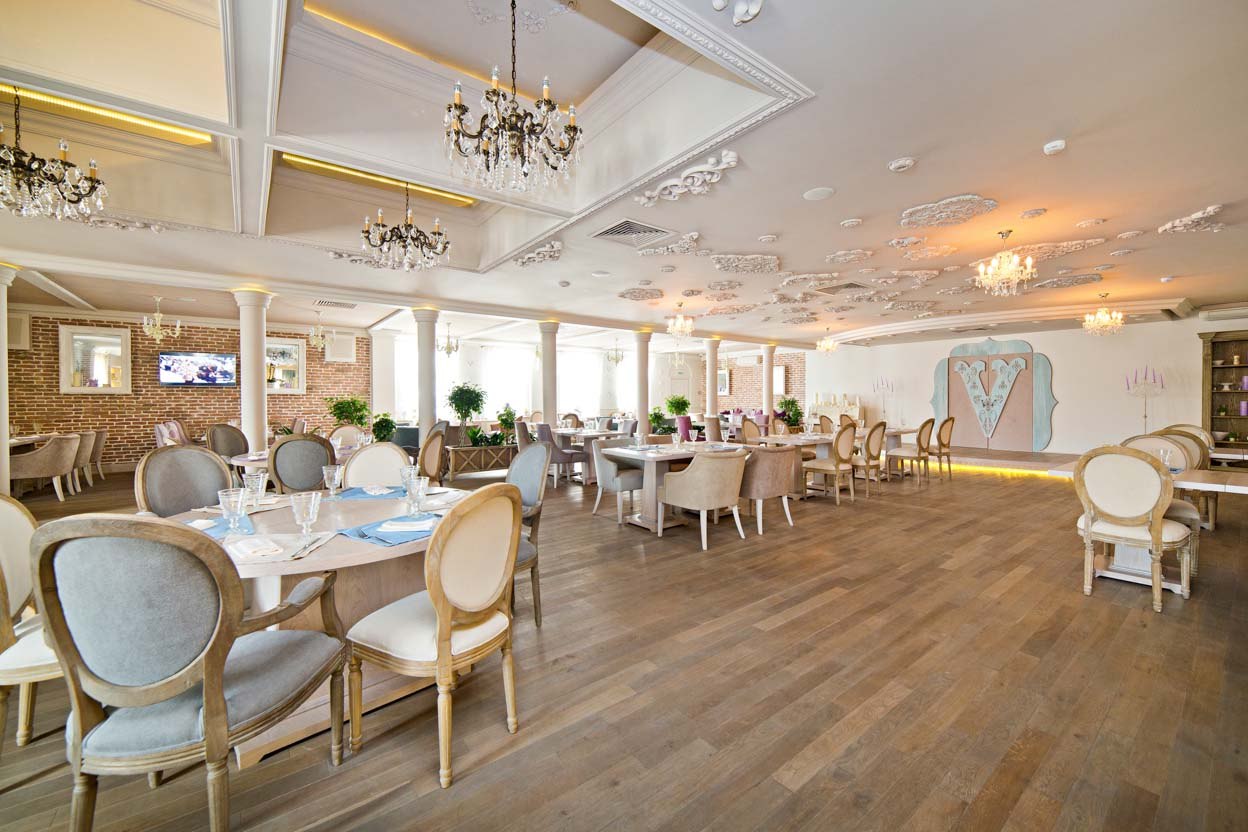 Ресторан идеально подойдет для проведения любого торжества, например, свадьбы, дня рождения, именин, детских праздников и корпоративов. Пространство поделено на 3 зала, каждый из которых рассчитан на разное количество гостей (20/45/130), благодаря чему гости могут выбрать как место для шумного празднования, так и для тихого семейного вечера.