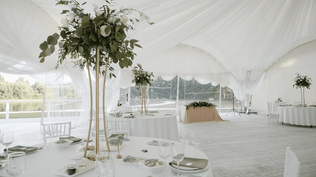 Просторный шатер площадью 310м2 позволяет проводить мероприятия до 130 человек в формате банкета и до 300 человек в формате фуршета.