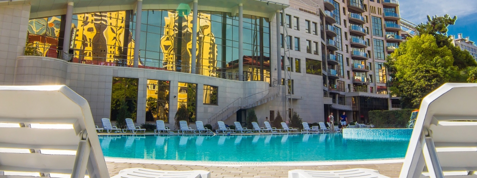 Здание отеля, построенного в стиле модерн, производит впечатление уютного и респектабельного дома, где хочется жить и работать. Небольшой, но уютный парк-садик, окружающий отель, радует зеленью субтропических растений и яркостью цветов круглый год. А из номеров открывается великолепный вид на город и на море. Прибыли Вы в командировку или на отдых, Вы по достоинству оцените удобное местоположение отеля, комфорт и элегантность номеров, прекрасную кухню ресторана.