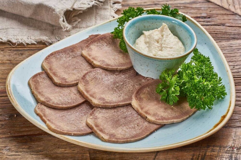 - подавать на блюде, положив на каждый драник по пластику варёного языка, со сметанным соусом с добавлением чеснока (по желанию)
