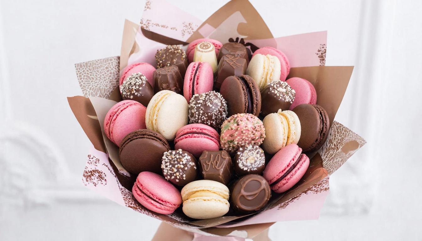 - Сладкий букет или торт-сюрприз: букет, собранный из её любимых шоколадных батончиков или макаронс, станет вкусной альтернативой цветам. Или подарите торт, на котором будет ваша совместная фотография, напечатанная пищевыми чернилами.