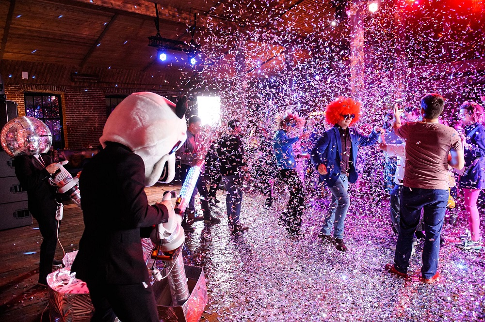 8. ЛОФТ. Корпоратив в ЛОФТе — это мой самый любимый формат. Из плюсов: большое и просторное помещение с модным интерьером и хорошим оснащением; есть место для танцев и выступления артистов; можно шуметь до утра, т. к. расположен вдали от жилых домов; можно свой алкоголь «без пробки»; как правило, разрешён свой кейтеринг; на мероприятии не будет чужих людей; возможен любой формат вечеринки — пижамная, бумажная, пенная, пляжная и т. п.