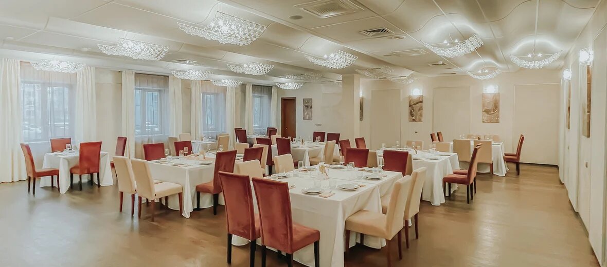 Для проведения торжественных и деловых мероприятий на территории комплекса имеется просторный зал с современным оборудованием.