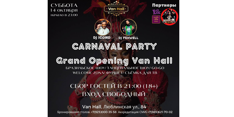 С 19:00 до 23:00 выступают артисты «ВАН ХОЛЛ» (живой вокал)