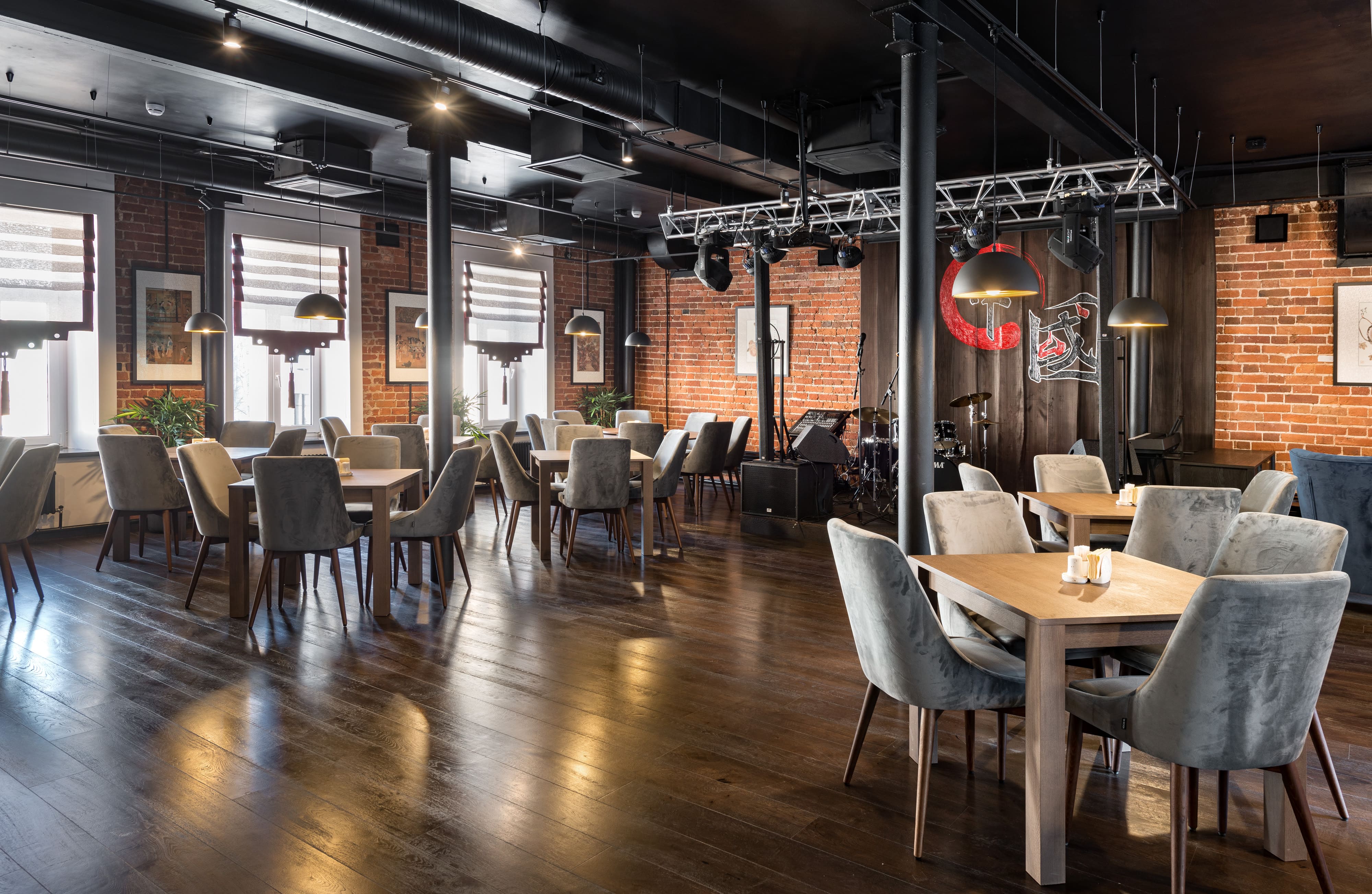 Мягкие кресла и круглые столы — комфорт и непринуждённое общение для ваших гостей.