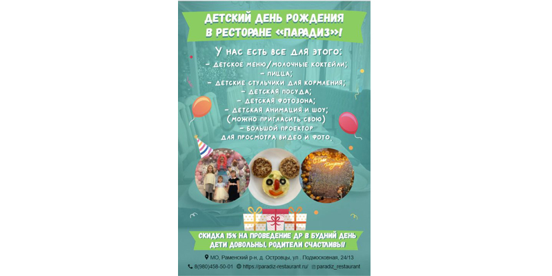 Детский день рождения в ресторане Парадиз