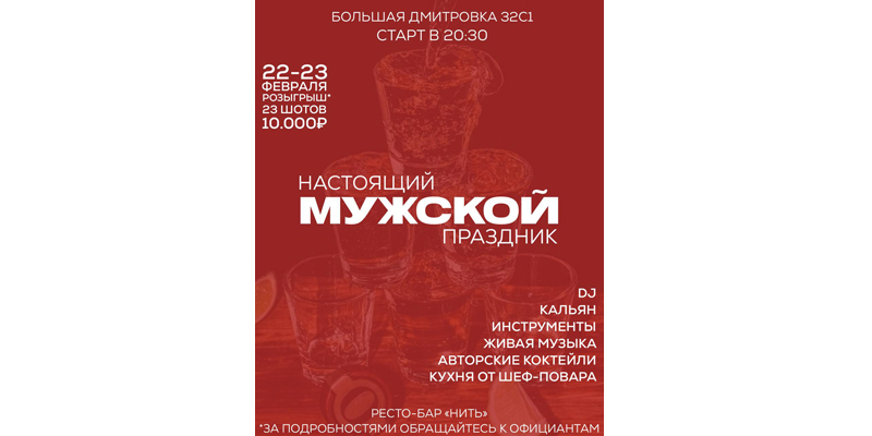 Празднуем 23 ФЕВРАЛЯ в ресторане НИТЬ с размахом и с подарками!