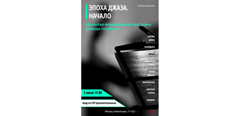 ☑️ Закрытая иммерсивная выставка французского фотохудожника Давида Фернана Андре Глориана "L’ère du jazz" в Москве.