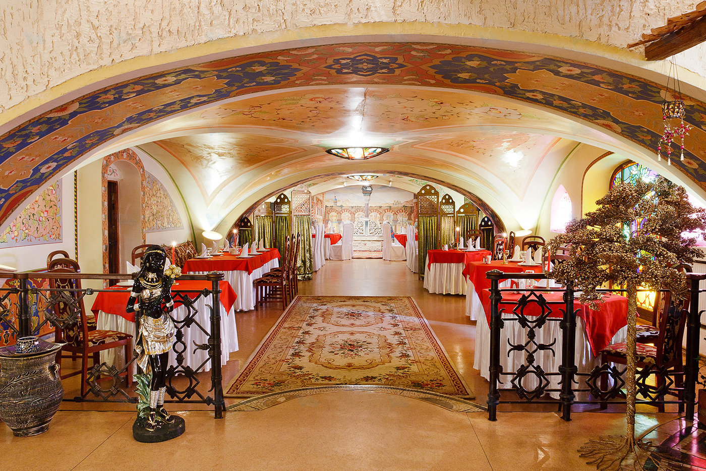 Восток – дело тонкое, и это как нельзя лучше понимаешь в ресторане «1001 ночь». Интерьер заведения – это действительно восточная сказка:фрески на стенах и чудесные напольные мозаики делали профессиональные узбекские ремесленники. Кувшины с восточными орнаментами, старинные светильники – всё здесь мило и очаровательно. А под журчанье ручьёв и фонтанов после сытного обеда можно ненароком и сладко задремать.