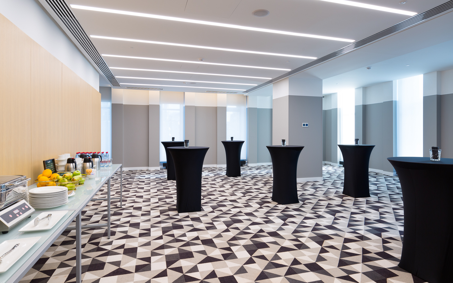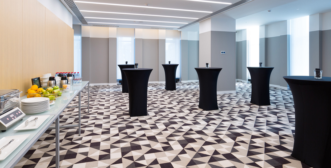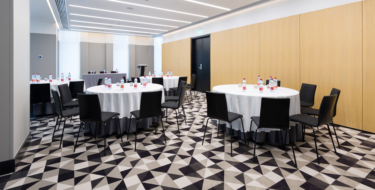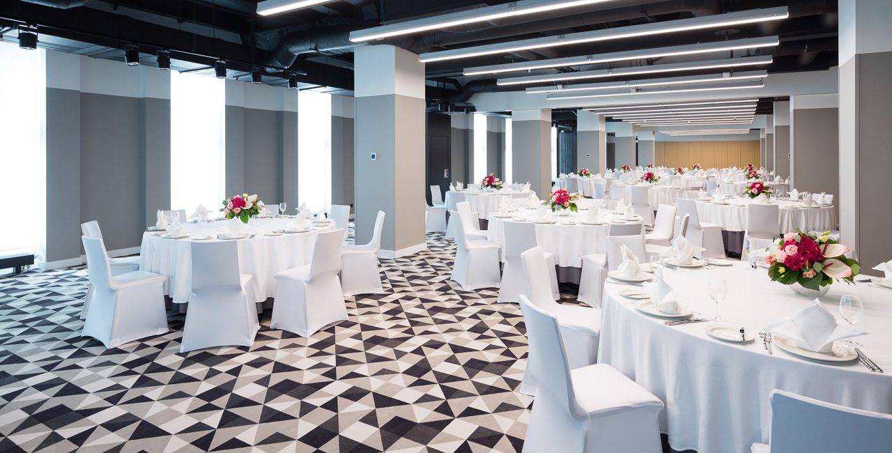 На 20 этаже Отеля расположен зал «Арбат» с панорамными видами на центр города и площадью 180 кв.м.. При необходимости зал можно разделит на два специальными шумоизолирующими перегородками. Для проведения кофе-брейков предлагается специальная зона с видом на легендарную сталинскую высотку - здание МИД РФ. Зал подойдет как дляделовых встреч, иконференций, так идля вечеринок, свадеб идругих мероприятий.
