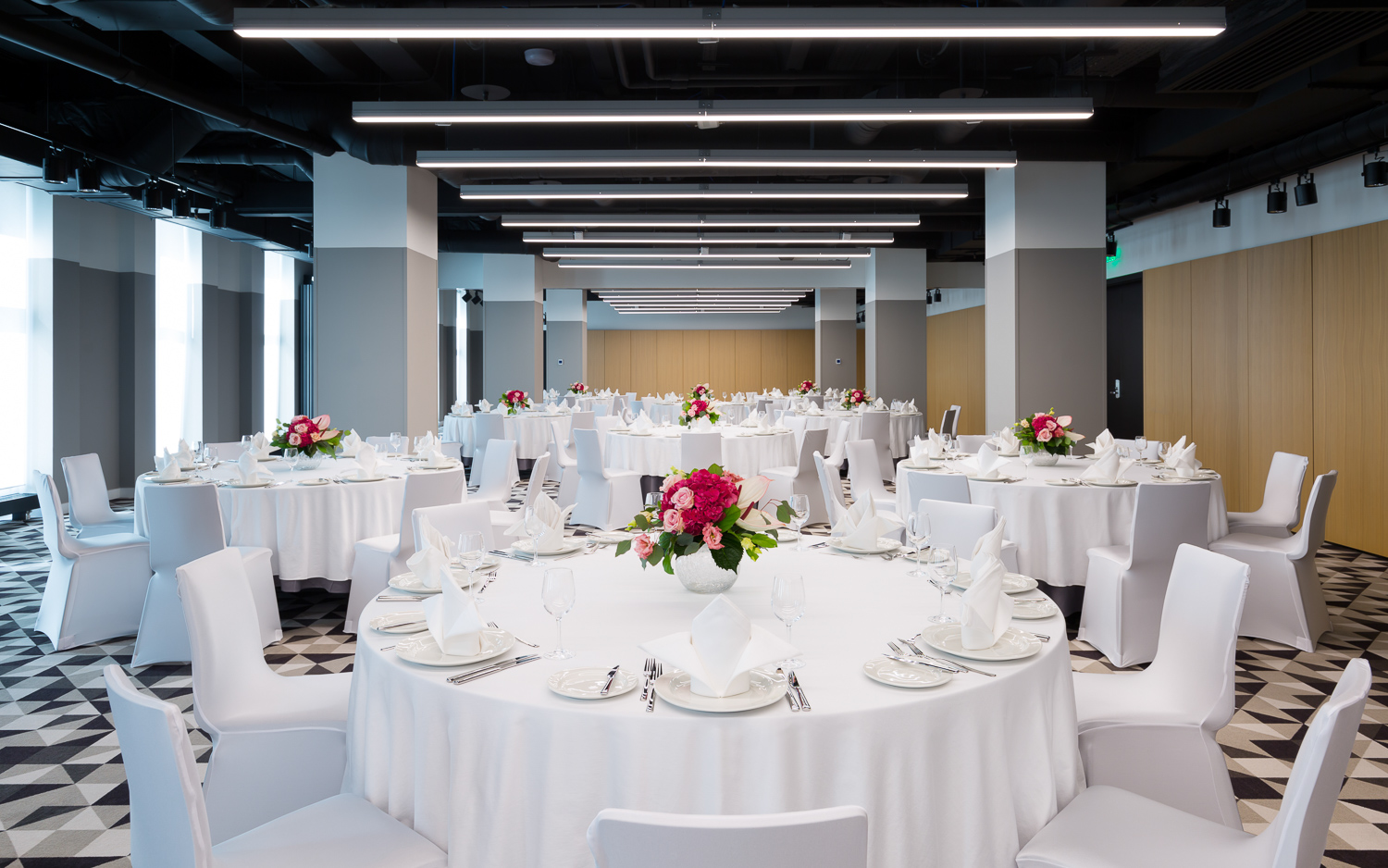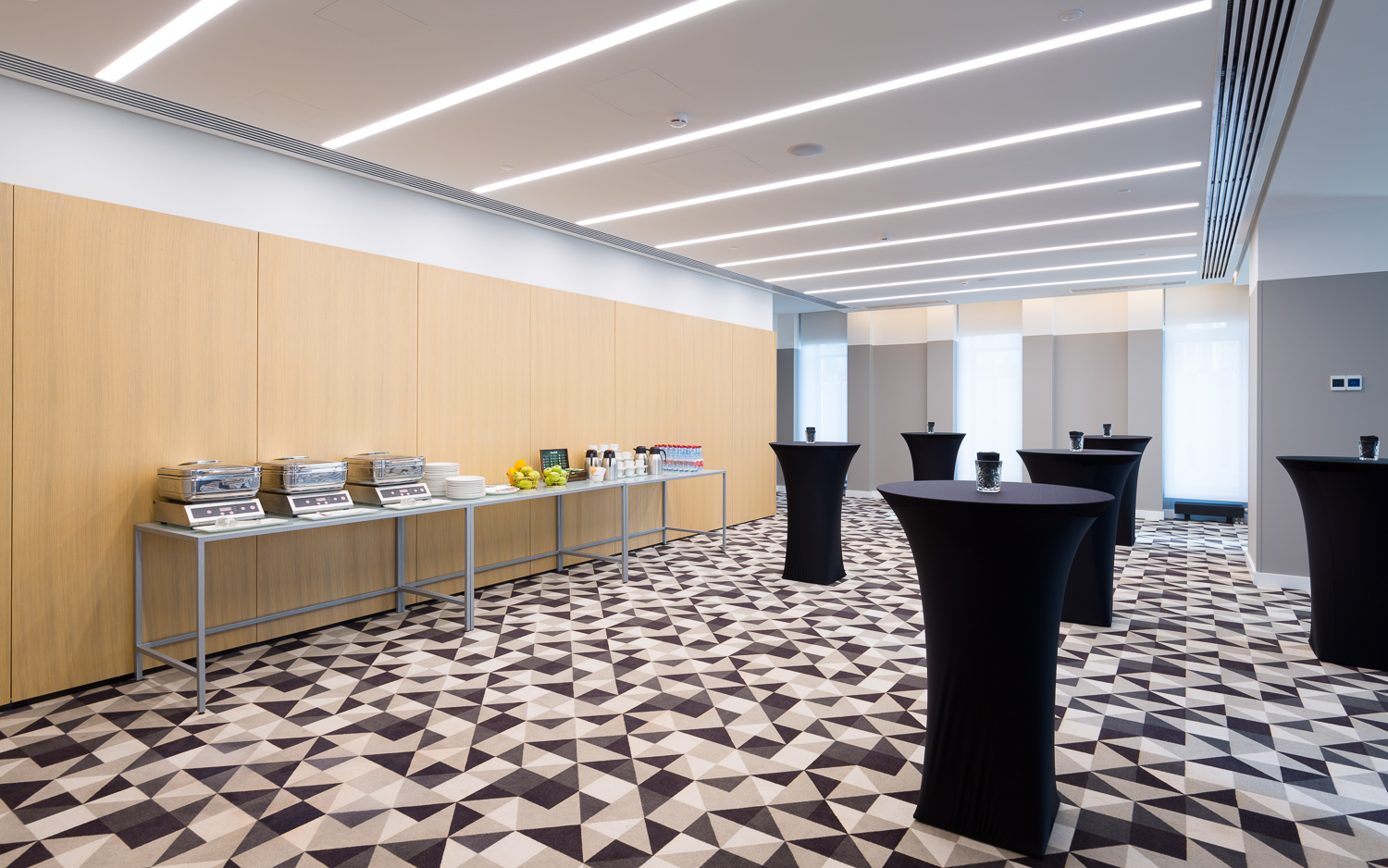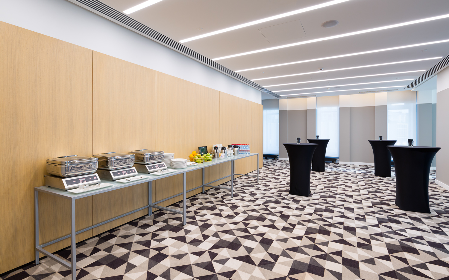 На 20 этаже Отеля расположен зал «Арбат» с панорамными видами на центр города и площадью 180 кв.м.. При необходимости зал можно разделит на два специальными шумоизолирующими перегородками. Для проведения кофе-брейков предлагается специальная зона с видом на легендарную сталинскую высотку - здание МИД РФ. Зал подойдет как дляделовых встреч, иконференций, так идля вечеринок, свадеб идругих мероприятий.
