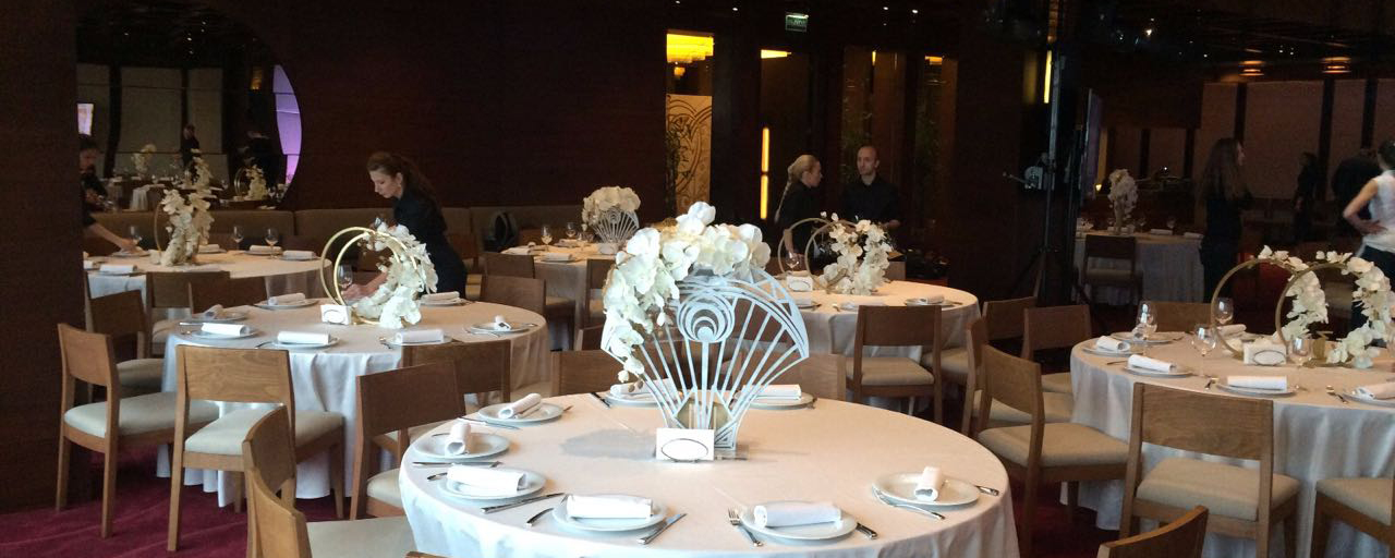 Банкетный зал KAI в «Крокус Сити Молле» – пространство со своей философией, кардинально отличается от одноименного ресторана a’la carte, расположенного этажом выше. Оформлен в строгих тёмных цветах, динамическая подсветка расставляет акценты и обеспечивает при необходимости камерность.