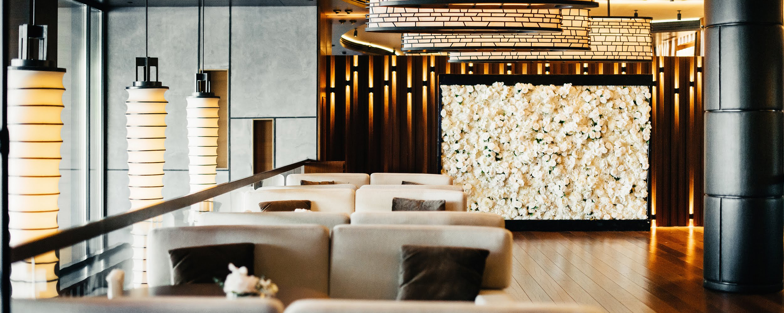 Банкетный зал KAI подходит для проведения любого мероприятия, от корпоративной вечеринки до свадьбы. Здесь есть welcome-пространство, где легко организовать фотозону или выездную регистрацию брака. Вмещает до 200 гостей на фуршете и до 150 – при банкетной рассадке. Удобное расположение предусматривает два входа: со стороны ТРК Vegas и другой – от ресторана Nobu.