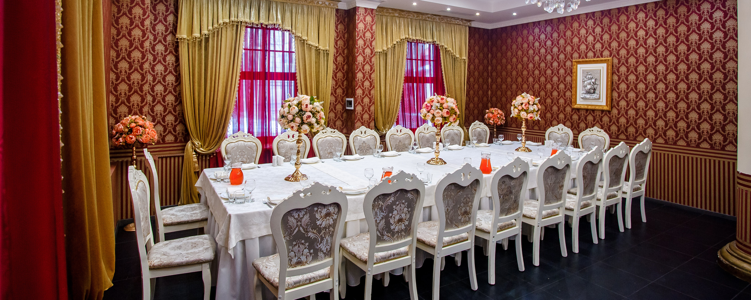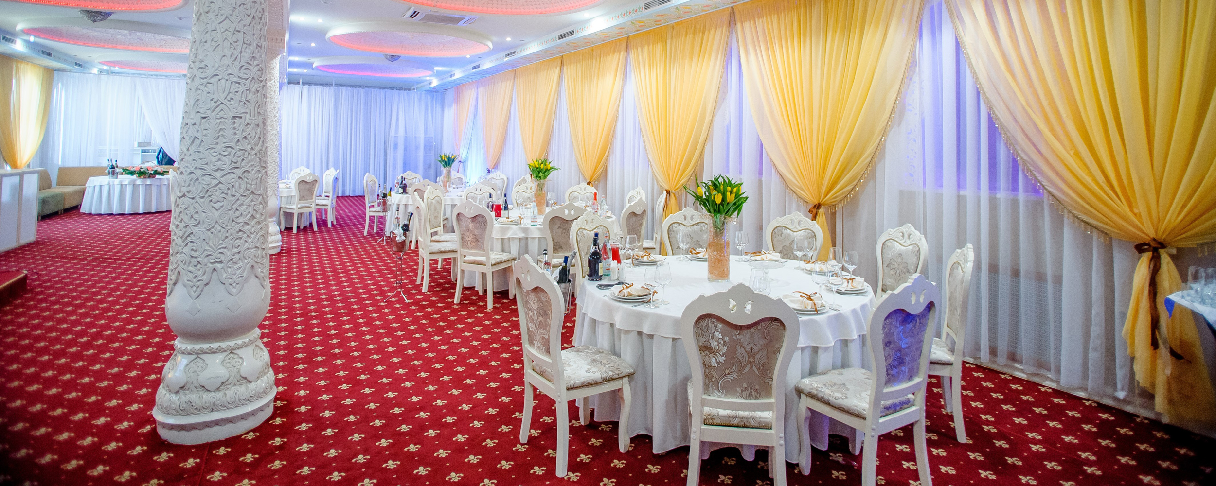 Для банкетов, фуршетов, торжеств и конференций имеется всё необходимое – красивая банкетная мебель и оборудование: звук, свет, микрофоны, караоке-система AST-100, декорации, сцена, фотозоны, шоколадные фонтаны, пресс-воллы, ТВ-плазмы 55", проектор с большим экраном, трибуна.