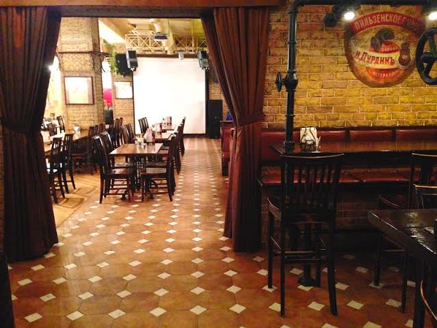 Интерьер ресторана выполнен в дореволюционном стиле c дополнением cовременных элементов, с использованием дерева и кирпича. Теплый свет и высокие потолки создают торжественную обстановку.