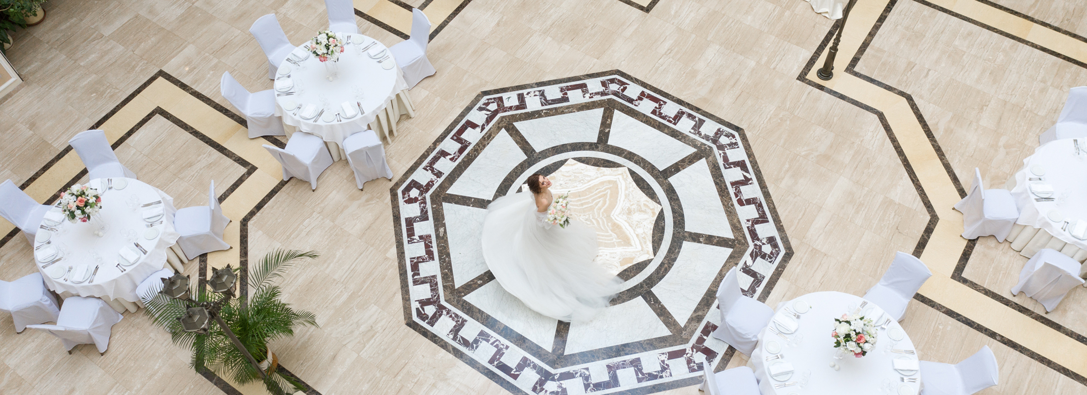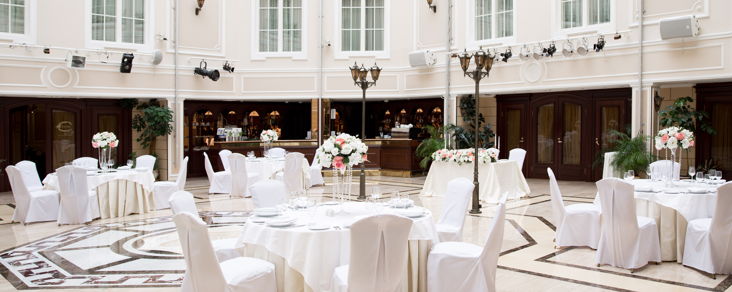 Трудно придумать более подходящий зал для свадьбы в европейском стиле, чем атриум «Версаль», расположенный на третьем этаже GRAND HOTEL EMERALD. Легкие, воздушные интерьеры под высокой стеклянной крышей с обилием дневного света создают романтическое и торжественное настроение, а выбор блюд и напитков, из которых можно составить свое собственное праздничное меню, приятно удивит даже самого взыскательного гурмана.