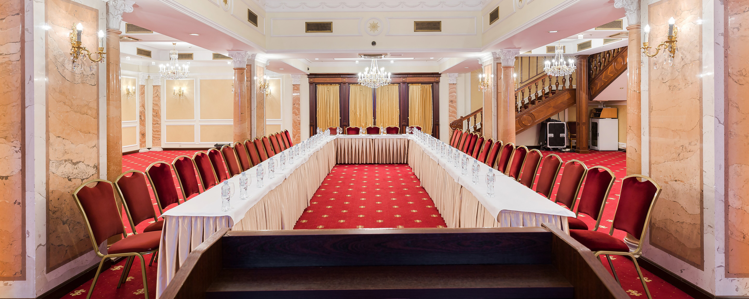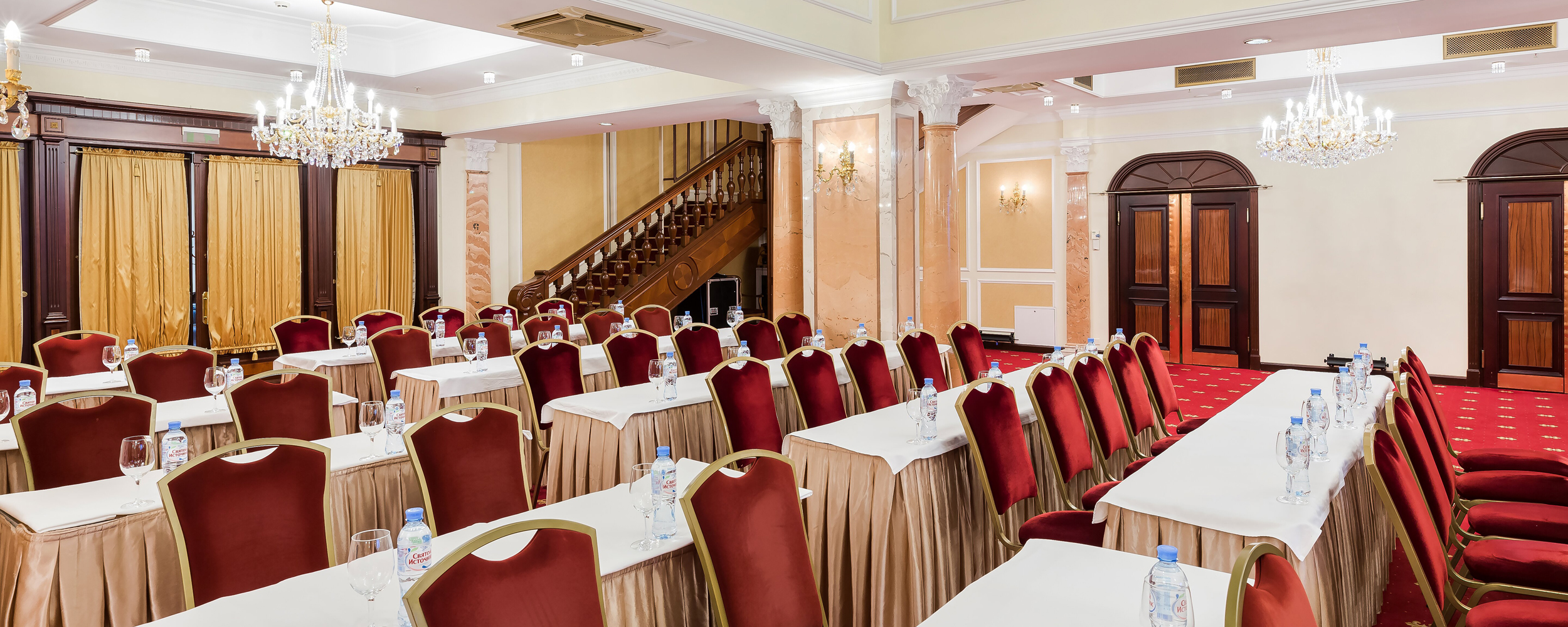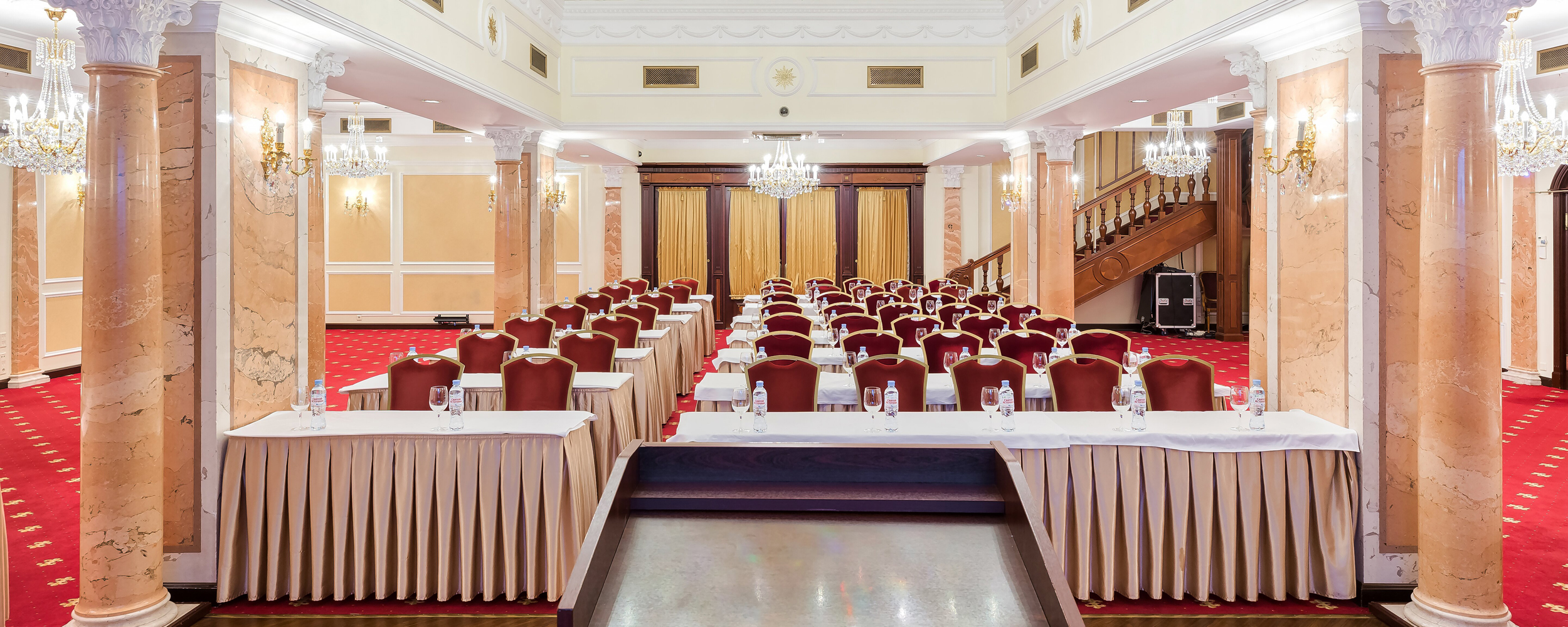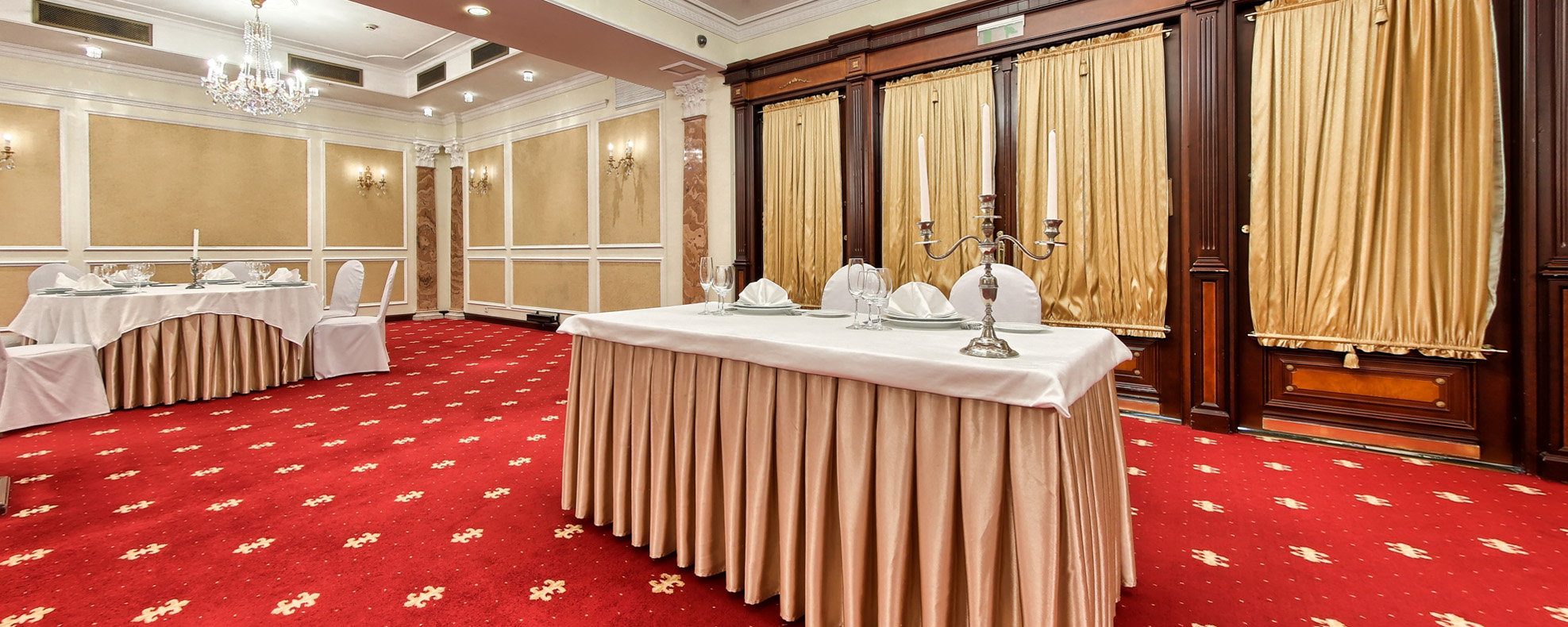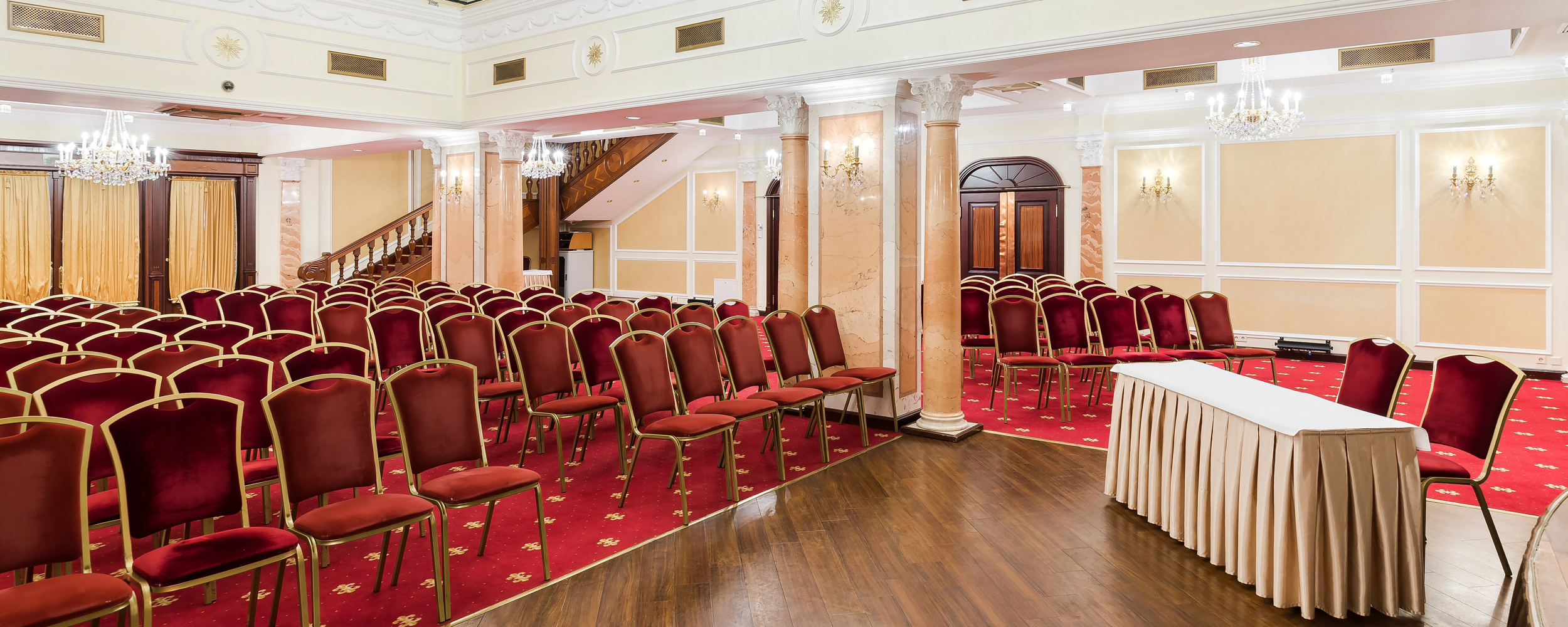 Этот просторный зал идеально подойдет для пышных свадеб с большим количеством участников. Инфраструктура зала включает в себя профессиональную сцену, гримерную комнату, световое и звуковое оборудование. Мрамор и хрусталь – сочетание, которое не оставит равнодушным людей, ценящих королевскую роскошь и выдержанный стиль.