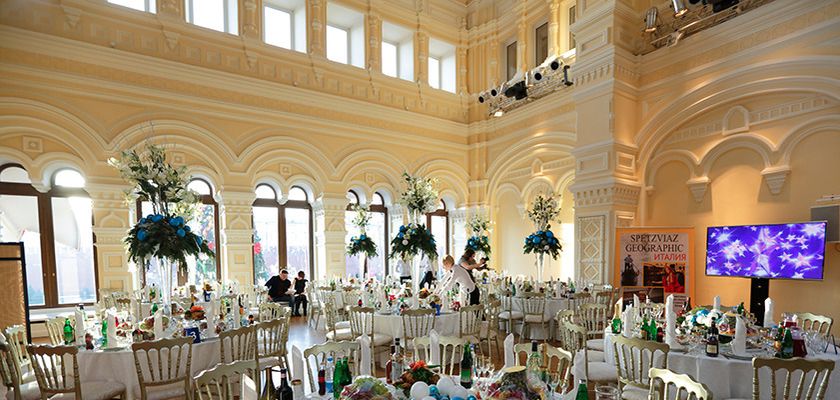 Это единственный в мире зал торжеств, позволяющий любоваться великолепной панорамой Красной площади. К расположенному на третьем этаже залу со стороны Красной площади ведет парадная лестница, выполненная из красного карельского гранита.