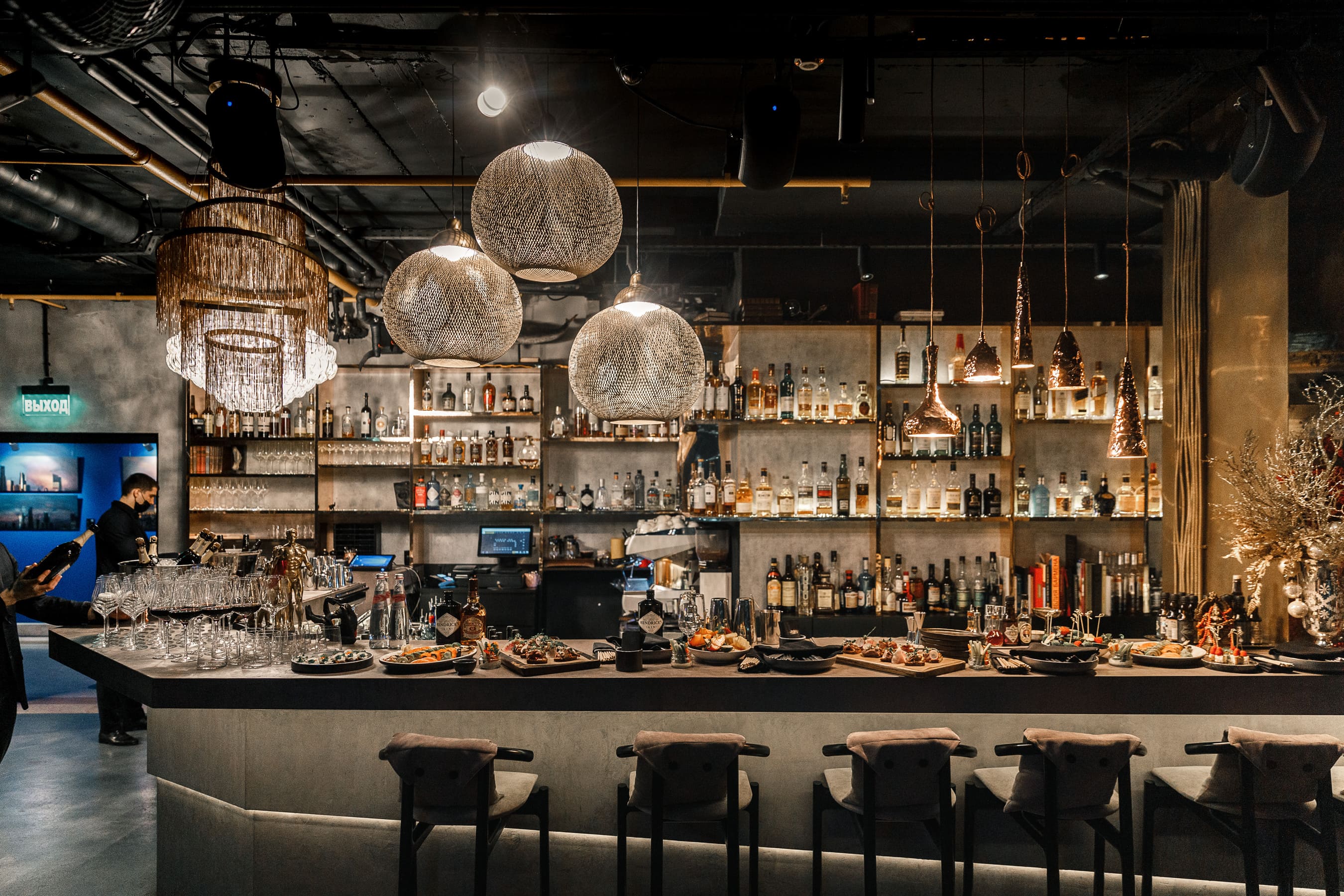 Площадь бара 200 м2, что дает нам возможность разместить до 150 гостей фуршетом и до 80 гостей банкетной рассадкой.