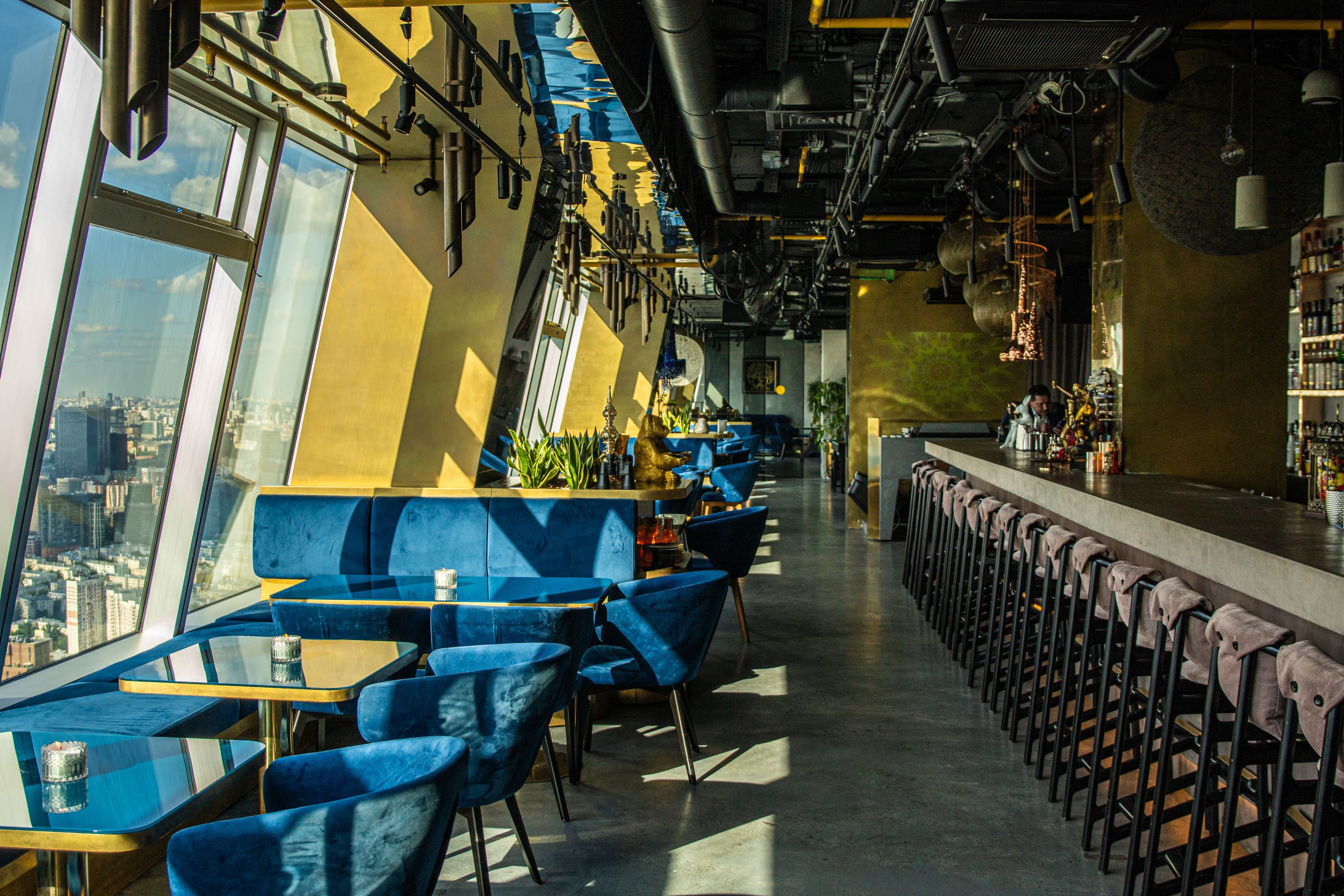 Эффектная подсветка вечерней Москвы – идеальное дополнение к атмосфере бара.